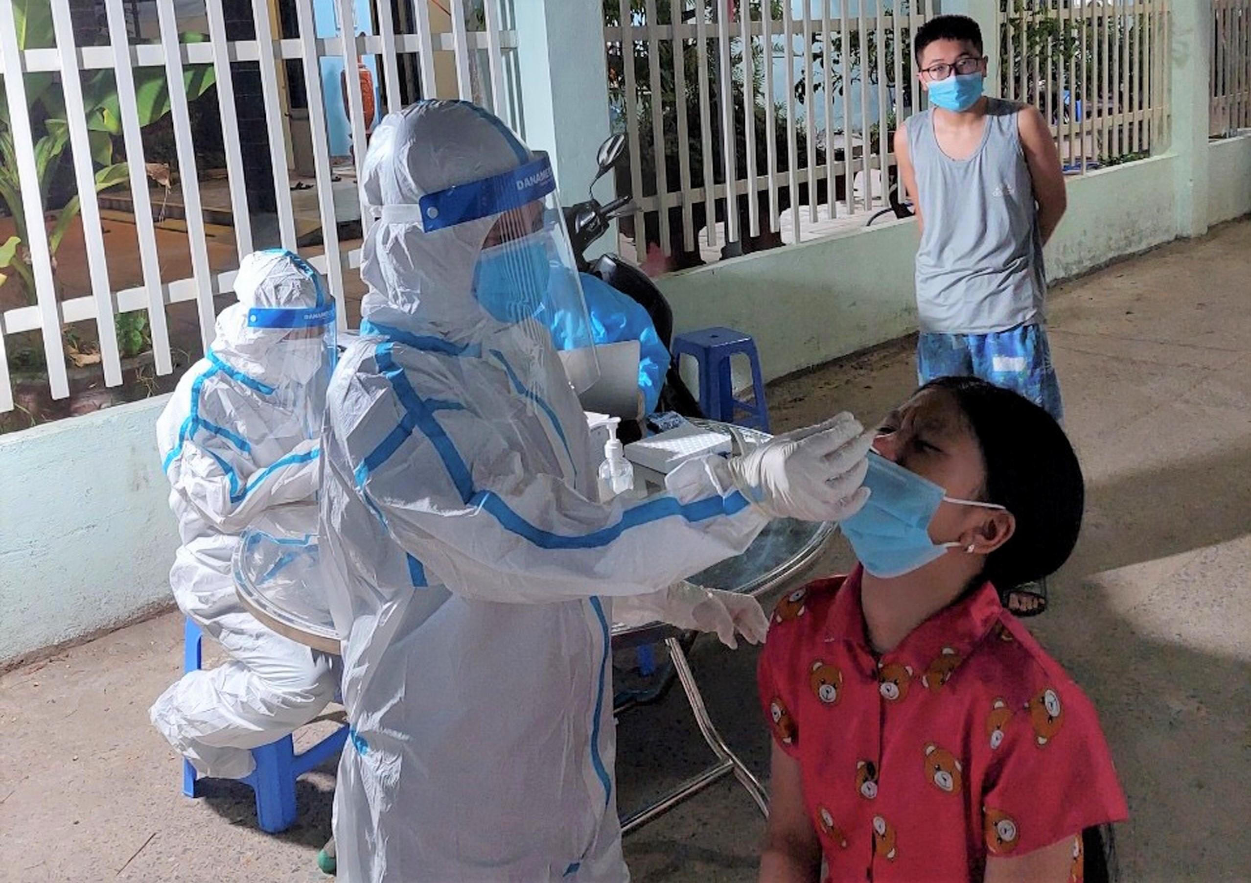 Nhân viên y tế ở Đà Nẵng lấy mẫu xét nghiệm COVID-19 cho người dân. |