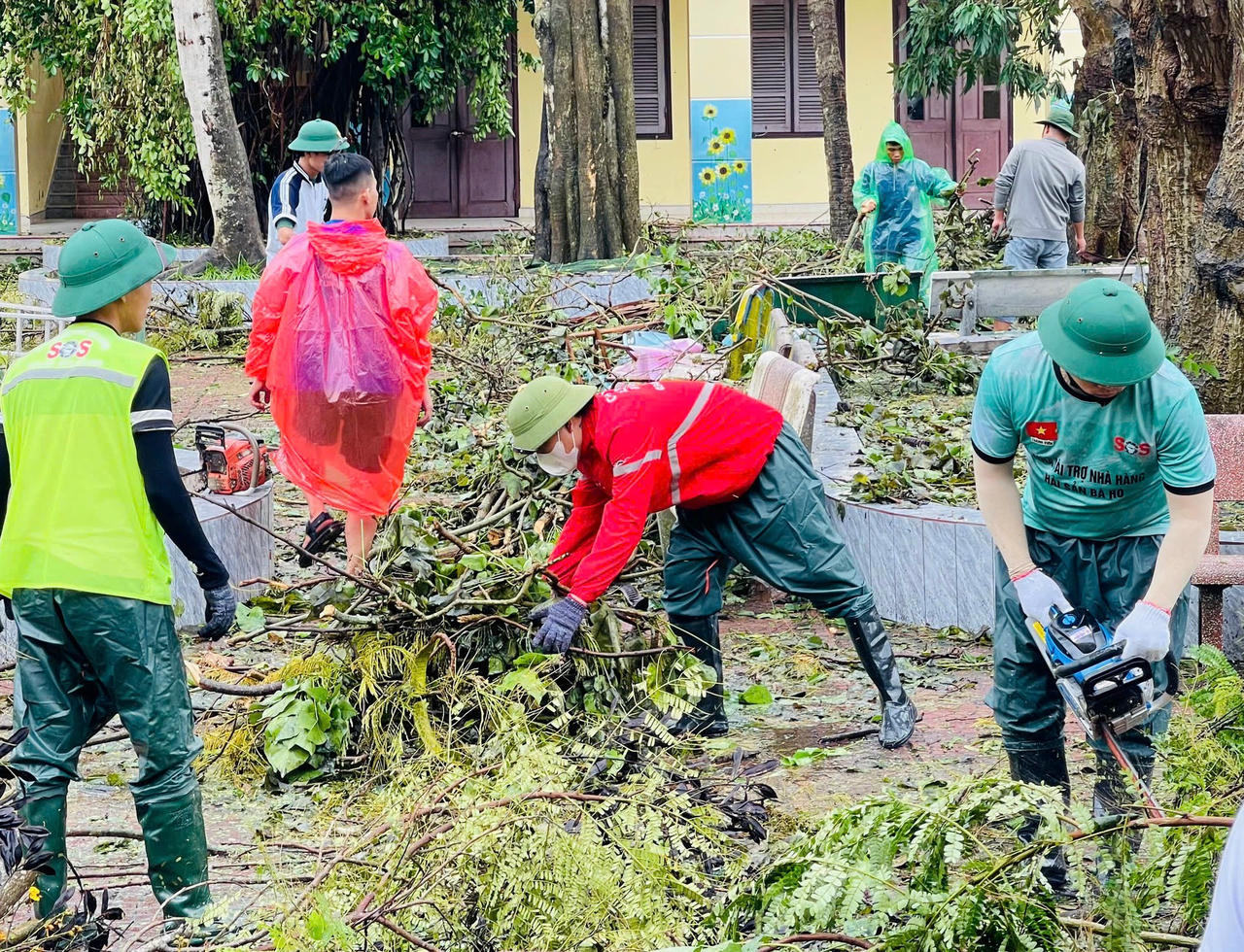 Anh Đặng Ngọc Tiến (28 tuổi, đội trưởng) cho biết, nhóm anh đến Hải Phòng để hỗ trợ bà con Đồ Sơn dọn dẹp các trường học, đưa cây cối ra ngoài, sửa chữa trang thiết bị hư hỏng.