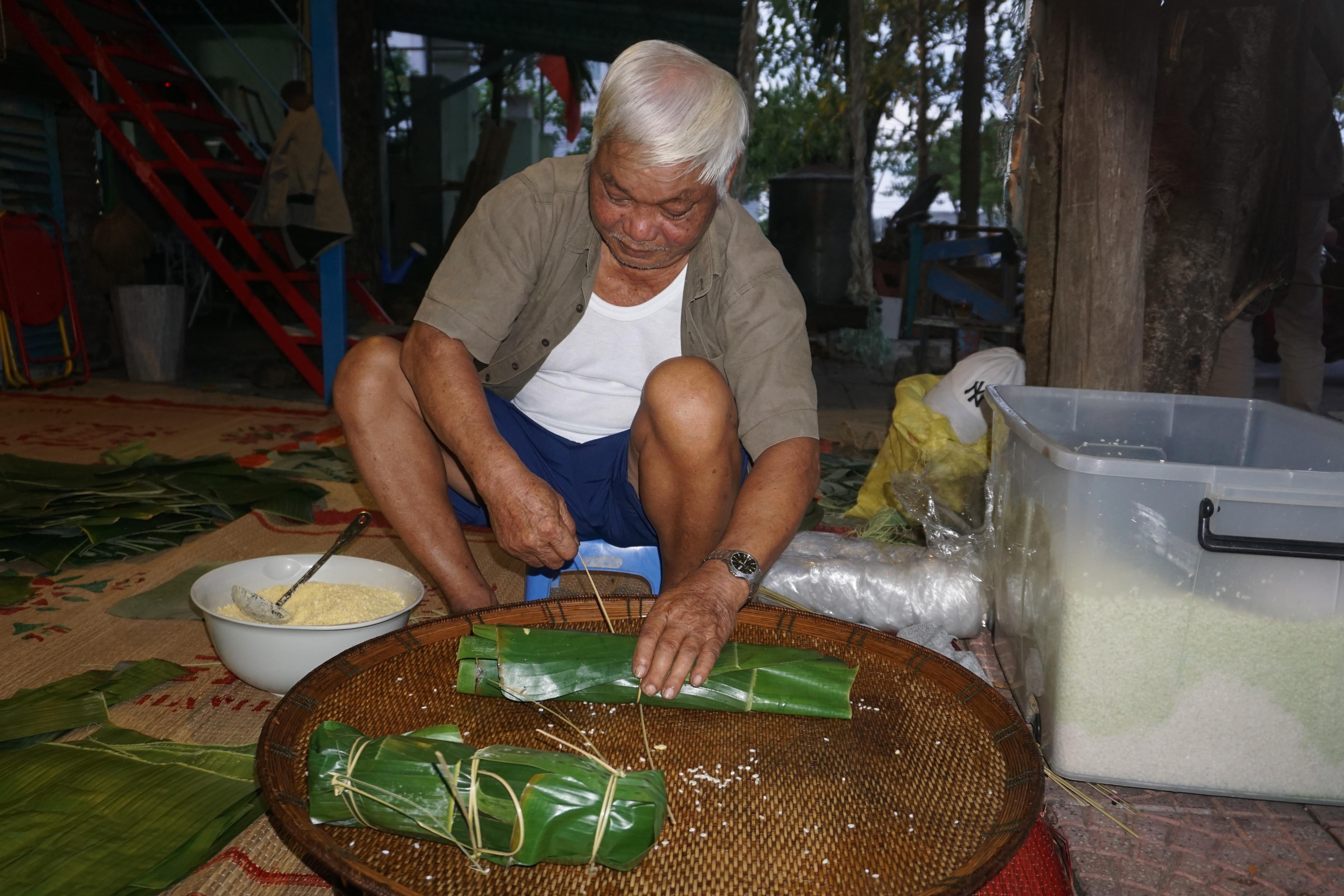 Thức xuyên đêm để gói, nấu 1.000 chiếc bánh. |