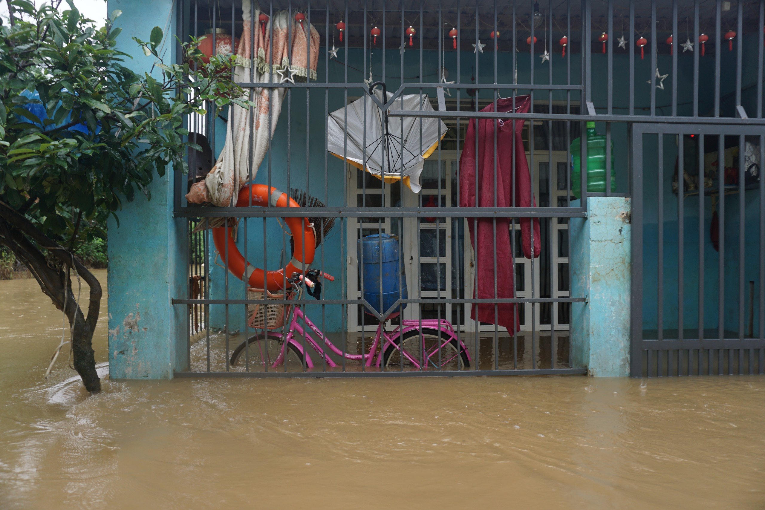 Khu vực dân cư ở đường Mẹ Suốt (phường Hòa Khánh Nam, quận Liên Chiểu), nơi được xem là "rốn lũ" của Đà Nẵng ngập trở lại khi tiếp tục có mưa lớn. |