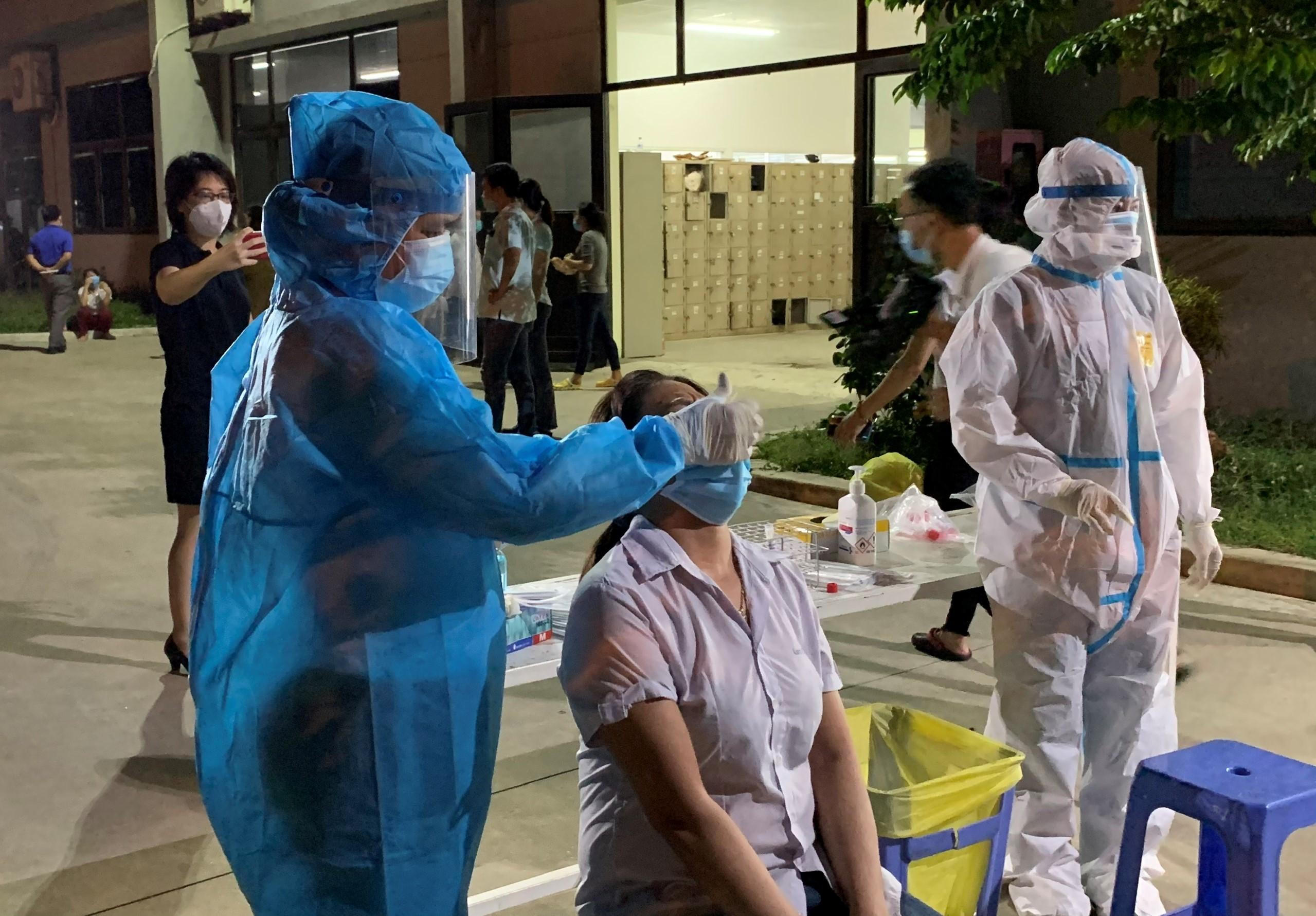 Lấy mẫu xét nghiệm COVID-19 cho công nhân ở Đà Nẵng. |