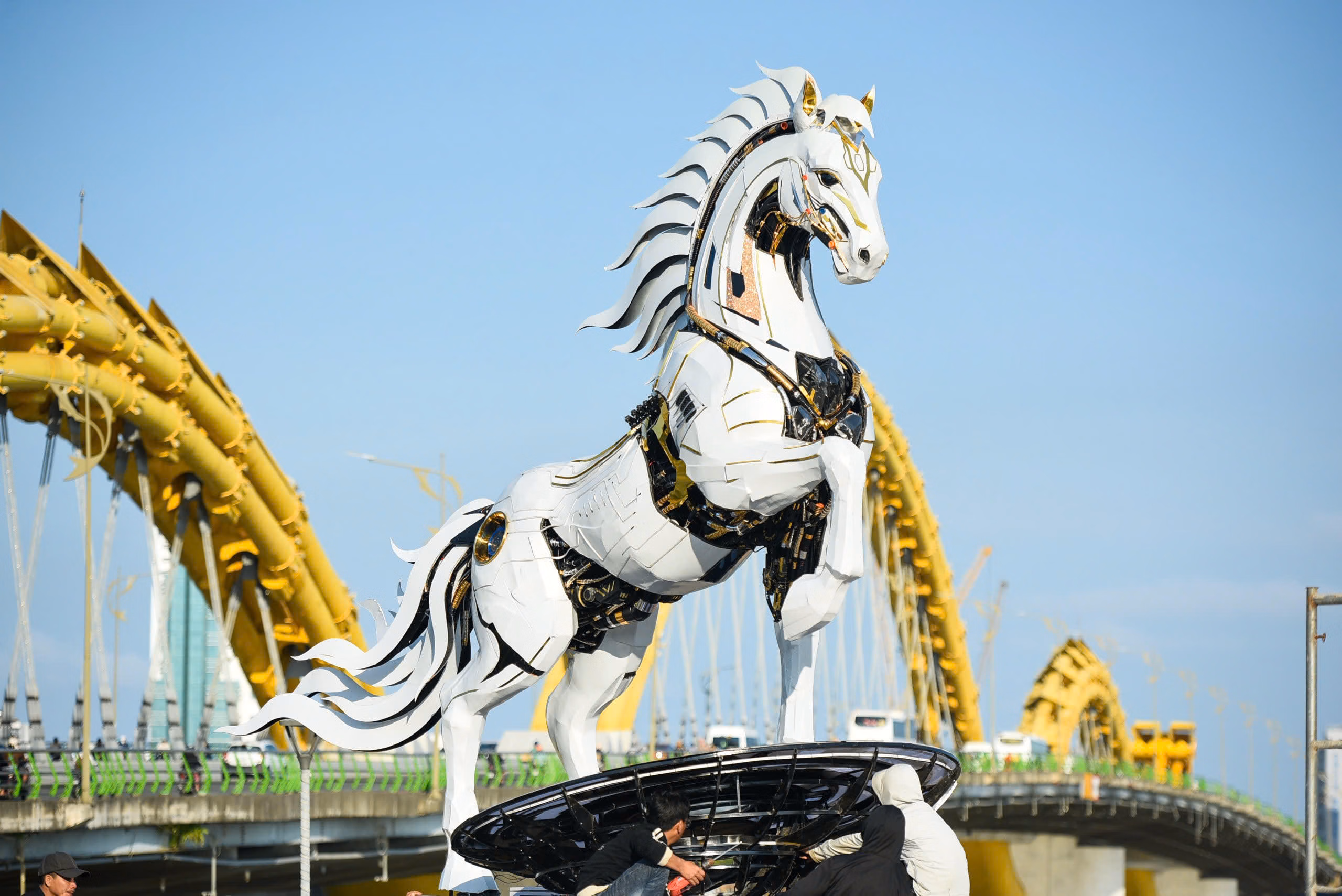 Qua quá trình rà soát, Sở Xây dựng cho biết tại khu vực sàn cảnh quan phía Nam, đuôi cầu Rồng hiện đang lắp đặt mô hình linh vật Kim Mã 4.0, biểu tượng của năm Bính Ngọ 2026. Không chỉ là hạng mục trang trí theo mùa, mô hình này được đánh giá có giá trị nghệ thuật tạo hình, đồng thời mang ý nghĩa biểu trưng cho tinh thần tốc độ, đổi mới sáng tạo và định hướng chuyển đổi số của TP Đà Nẵng.