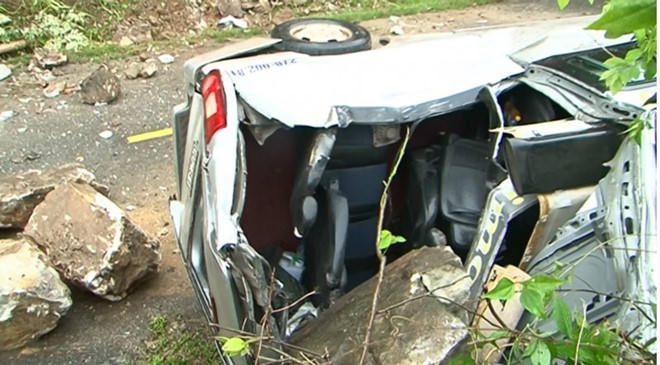 Đá rơi đè bẹp xe khách, 5 người trọng thương