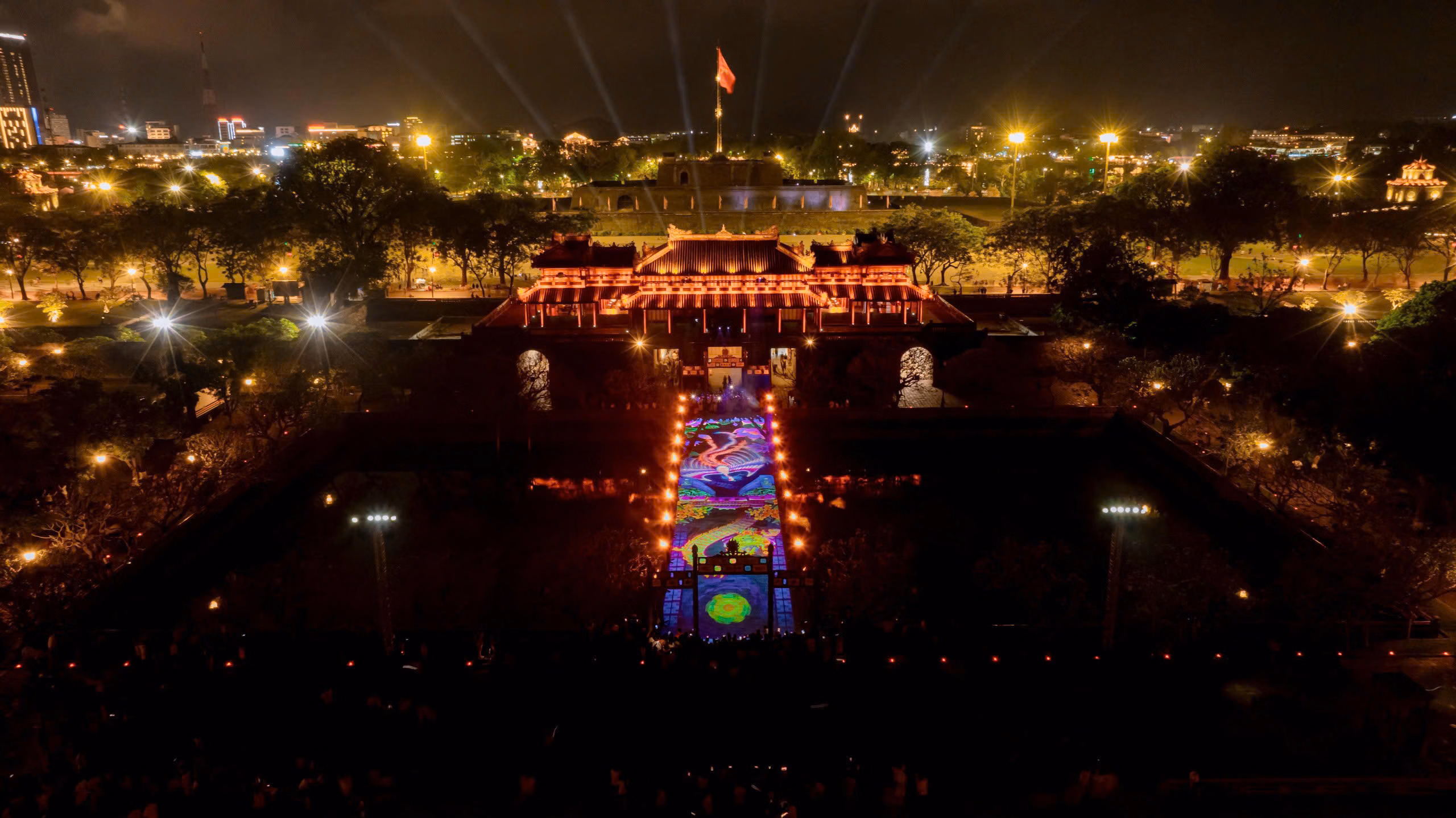 Diễn ra từ 20h các tối từ ngày 25/4 đến 28/4/2026, “Hoàng cung Huyền ảo” là hoạt động điểm nhấn thuộc lễ hội mùa Hạ “Kinh thành tỏa sáng” trong khuôn khổ Festival Huế 2026.
