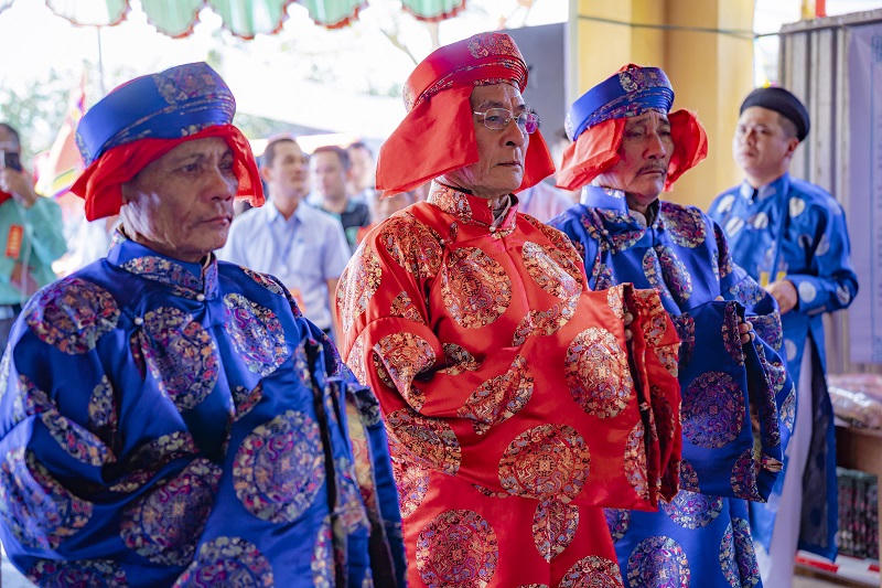 | Các bô lão trong làng tiến hành nghi lễ trước khi khai hội |
