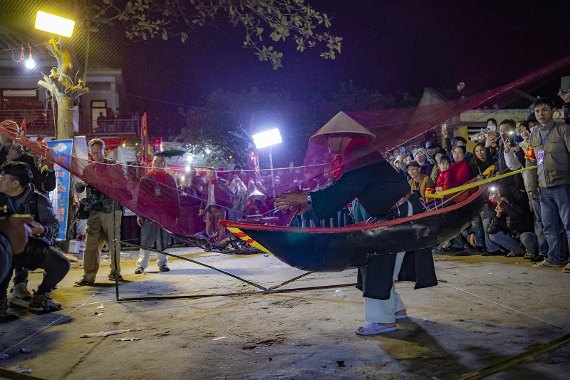 Một hoạt cảnh đánh bắt cá bằng lưới được người dân làng Thai Dương Hạ tái hiện |