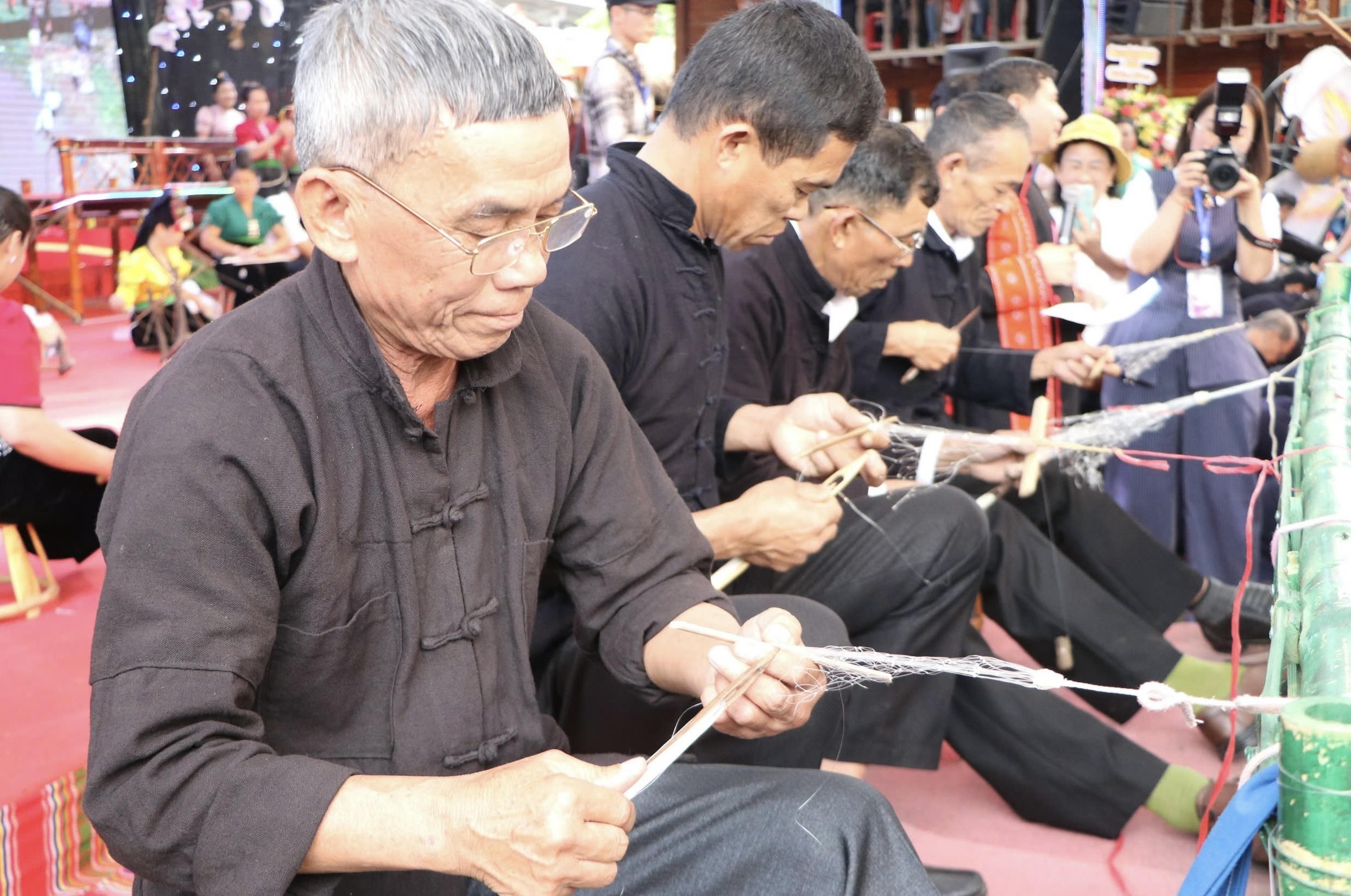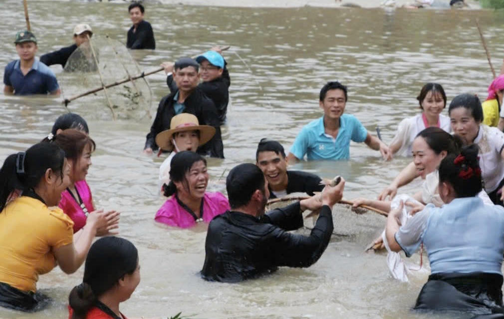 Thi đan lưới bắt cá tại Lễ hội Then Kin Pang. |