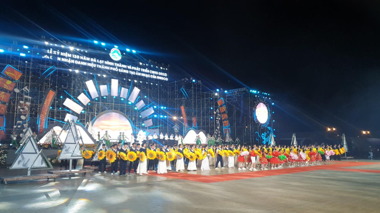 Tối 30/12, Lễ kỷ niệm 130 năm Đà Lạt hình thành và phát triển (1893 – 2023) và đón nhận danh hiệu Thành phố sáng tạo âm nhạc của UNESCO đã diễn ra trang trọng, đặc sắc tại Quảng trường Lâm Viên (TP Đà Lạt, Lâm Đồng).