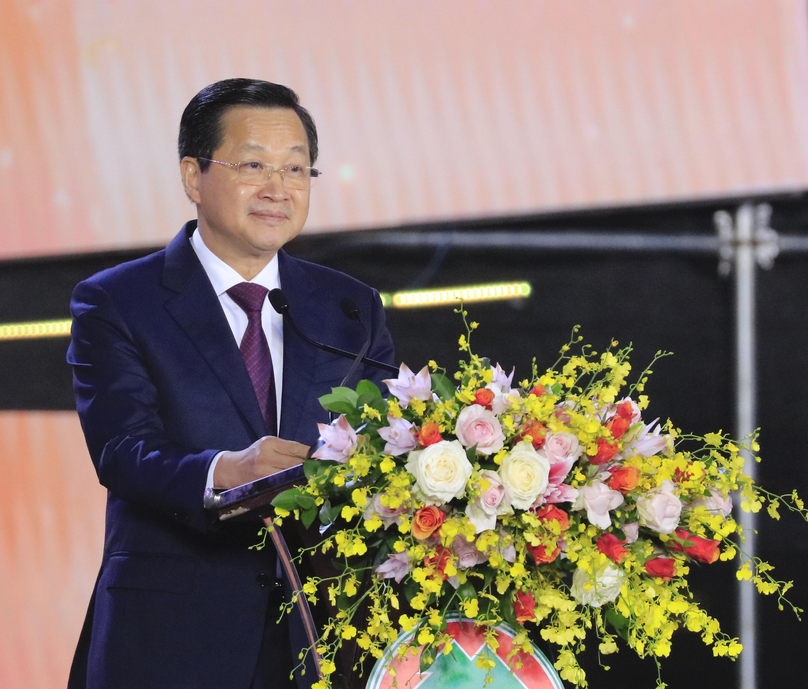 Phó Thủ tướng Lê Minh Khái phát biểu chỉ đạo tại buổi lễ. |