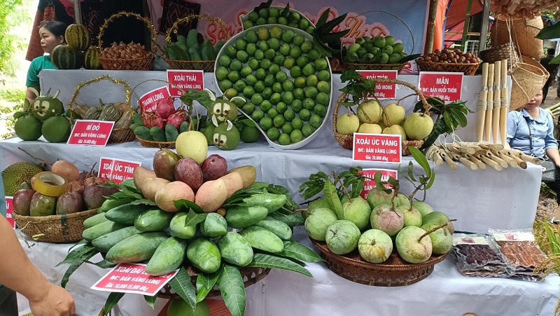 Sản phẩm xoài Yên Châu trưng bày tại các gian hàng. |