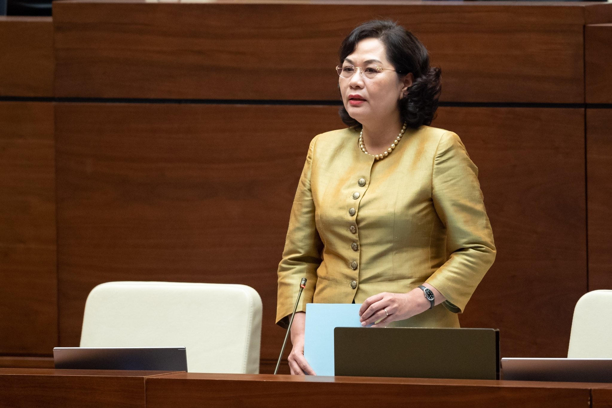 Thống đốc Ngân hàng Nhà nước Việt Nam Nguyễn Thị Hồng báo cáo về một số vấn đề mà nhiều đại biểu quan tâm. |