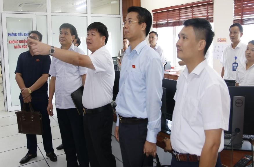 Giám đốc PC Lai Châu Bùi Xuân Thành giới thiệu Trung tâm Điều khiển xa của ngành Điện với các Đại biểu Quốc hội |