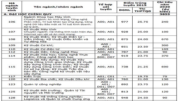 Cụ thể, tất cả chương trình chính quy đại trà của Trường ĐH Bách khoa TP HCM lấy điểm sàn là 19, chương trình chất lượng cao và tiên tiến là 18 điểm.
