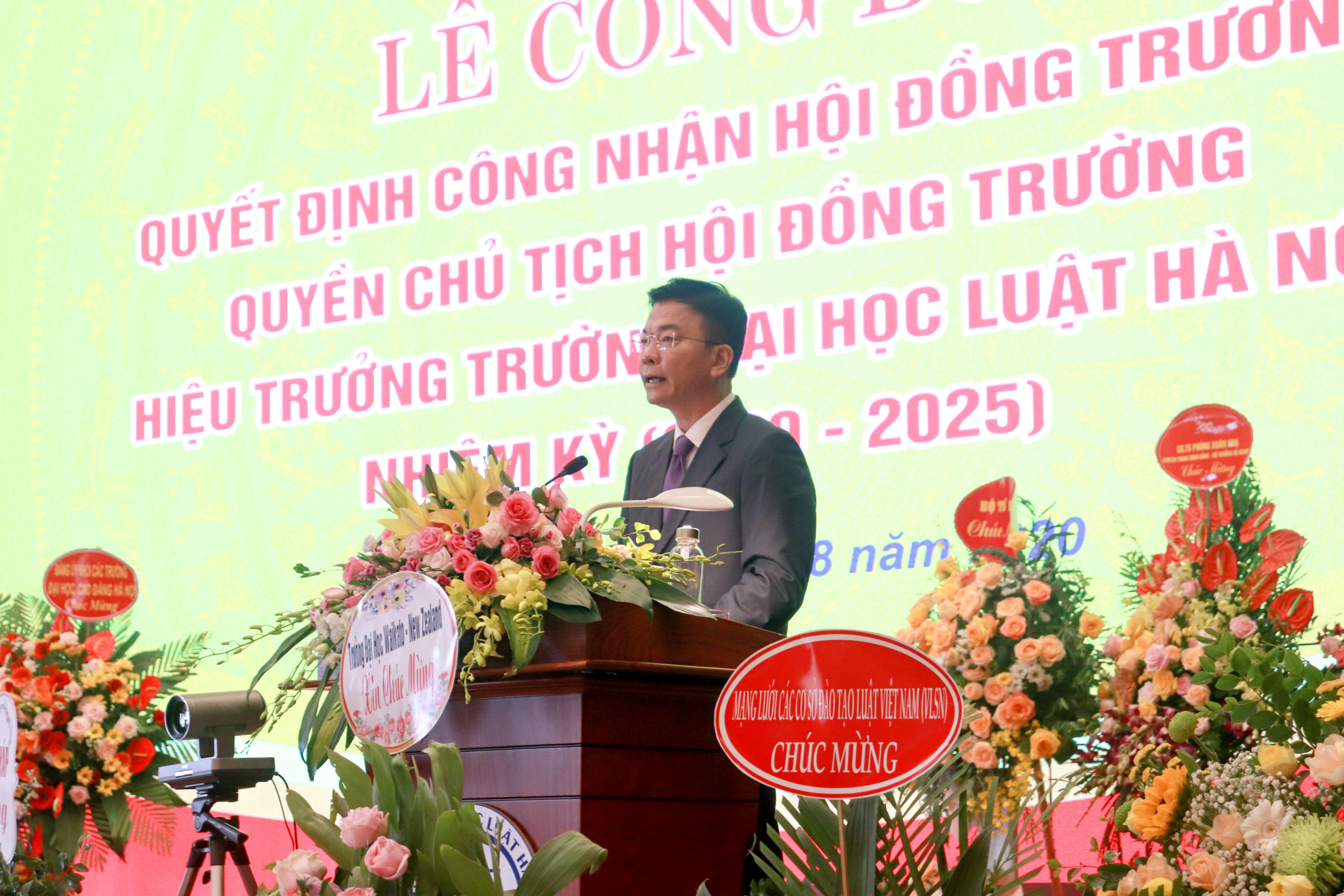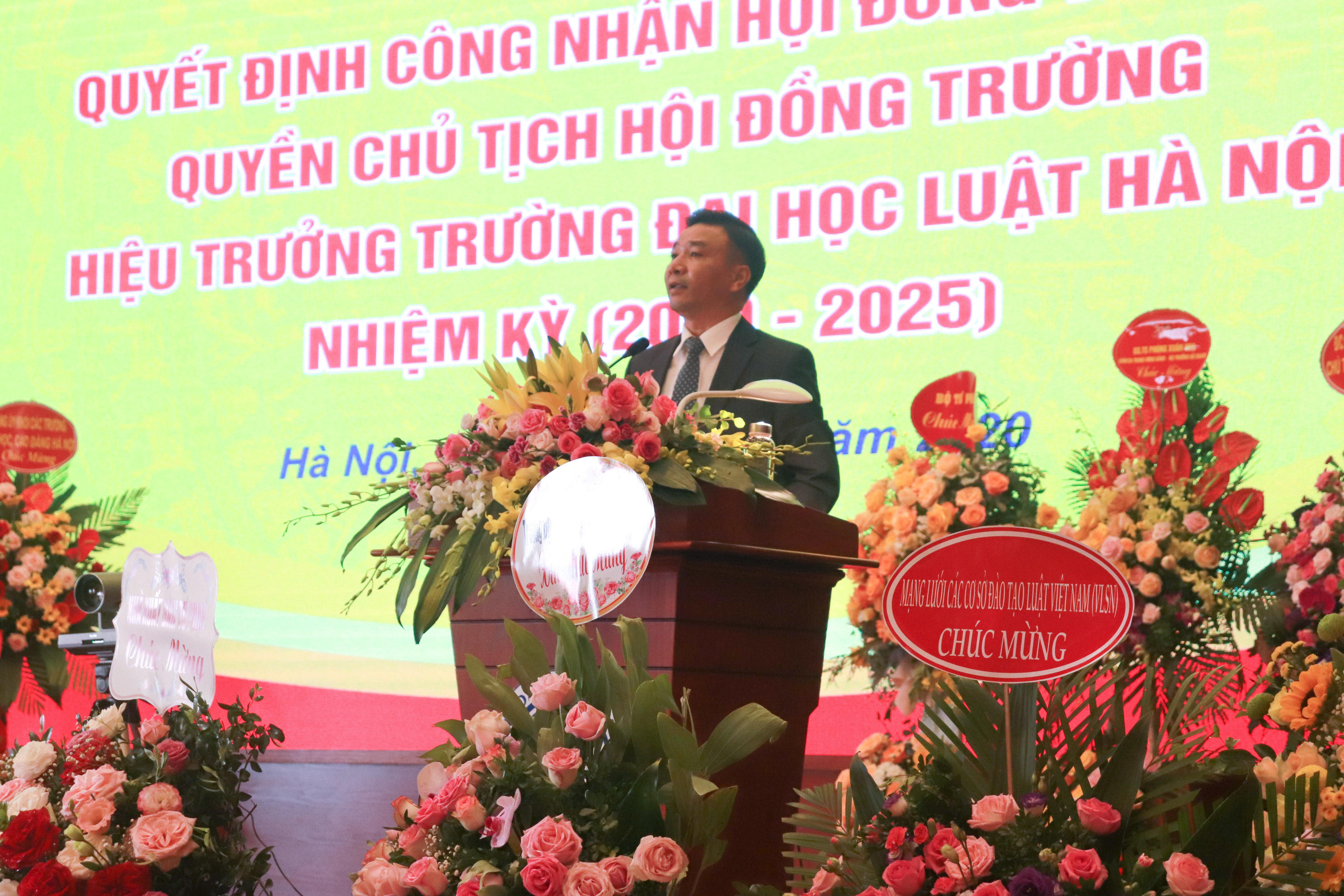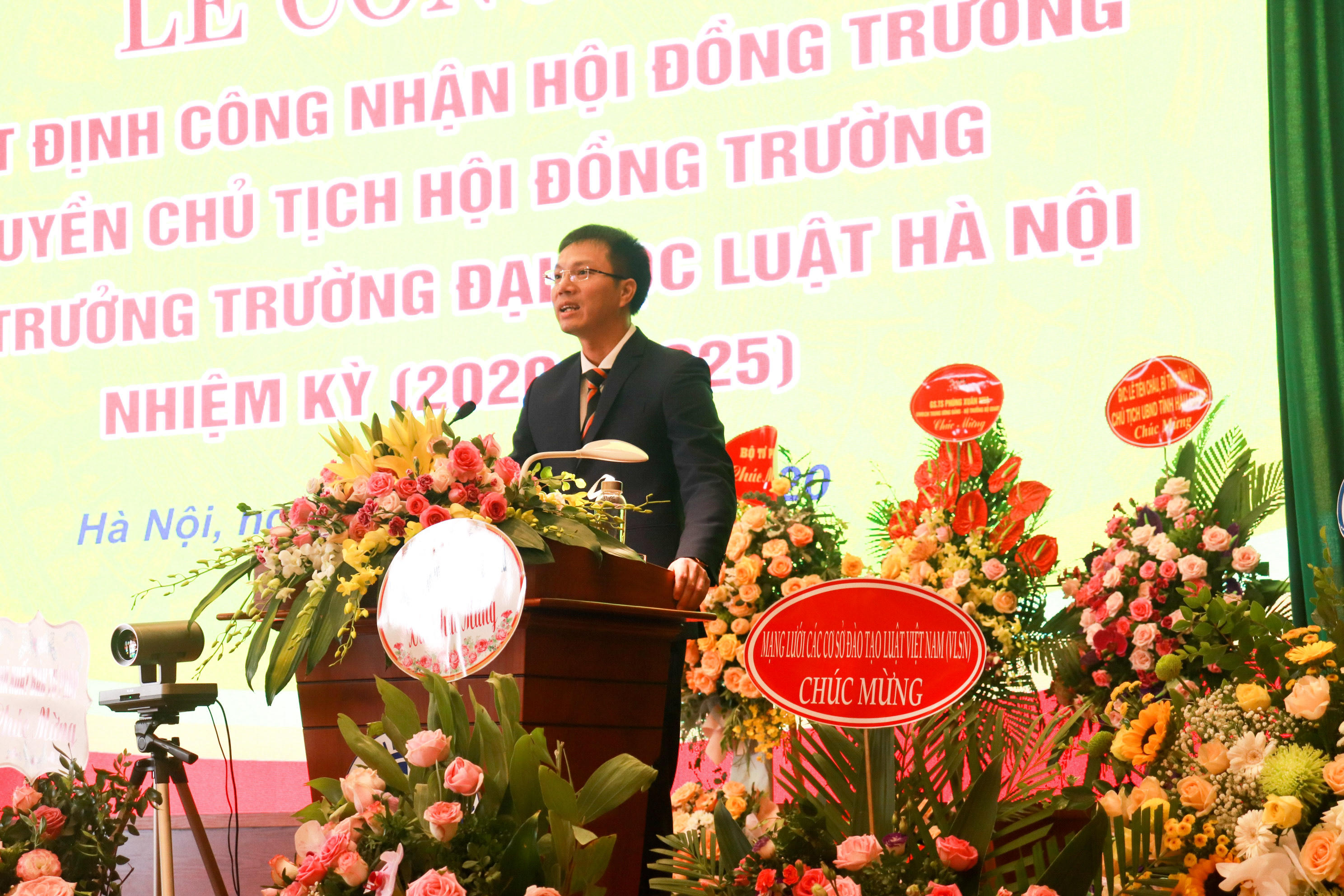 Tại buổi lễ, Phó Vụ trưởng Vụ Tổ chức cán bộ Phan Thị Hồng Hà đã công bố một số Quyết định của Bộ trưởng Bộ Tư pháp. Cụ thể, ngày 11/8/2020, Bộ trưởng Bộ Tư pháp đã ban hành Quyết định số 1737/QĐ-BTP công nhận Hội đồng trường Trường Đại học Luật Hà Nội nhiệm kỳ 2020 – 2025 và Quyết định số 1738/QĐ-BTP công nhận Quyền Chủ tịch Hội đồng trường đối với Tiến sỹ Chu Mạnh Hùng. Tiến sĩ Chu Mạnh Hùng đã đảm nhiệm chức vụ Phó Hiệu trưởng Trường Đại học Luật Hà Nội từ năm 2014 và được điều động và bổ nhiệm giữ vị trí Quyền Chủ tịch Hội đồng Trường nhiệm kỳ 2019-2024 và là Bí thư Đảng ủy Trường Đại học Luật Hà Nội (nhiệm kỳ 2020-2025).