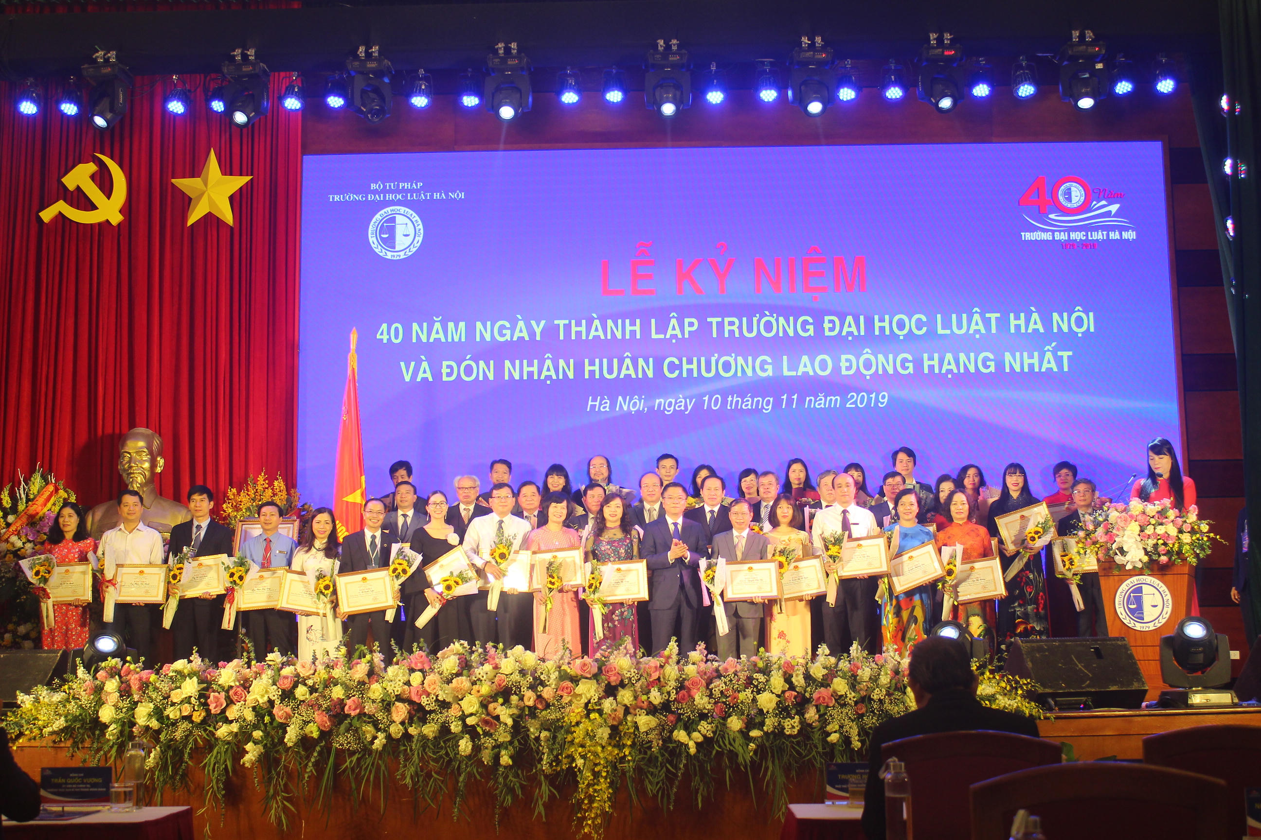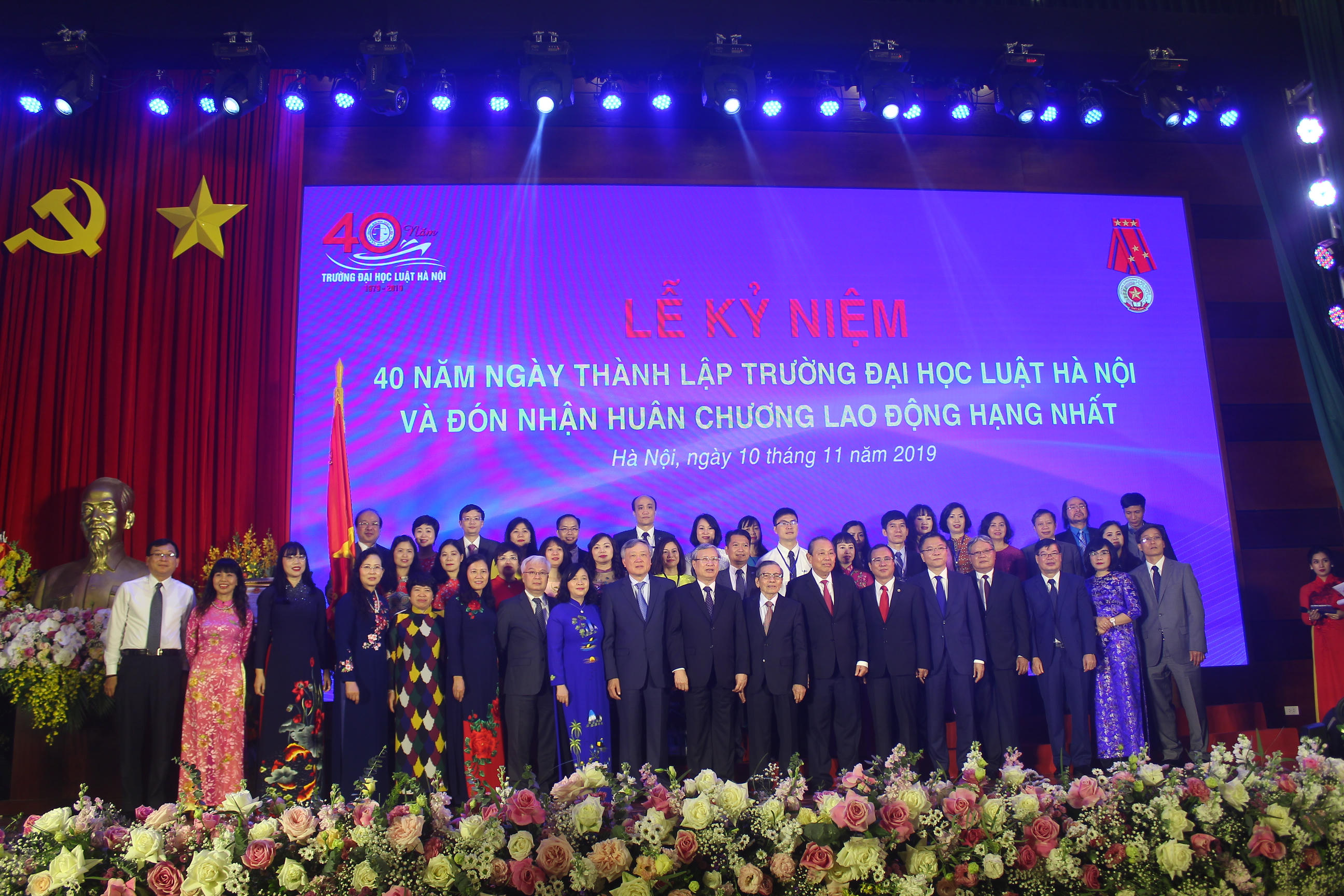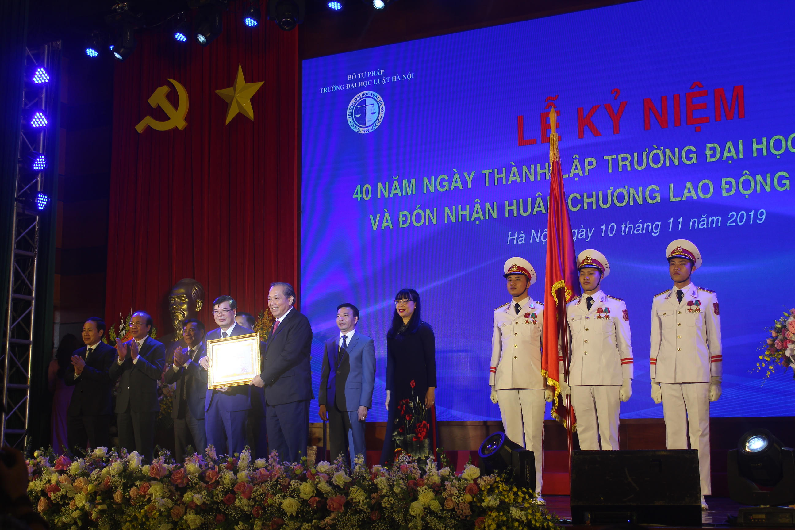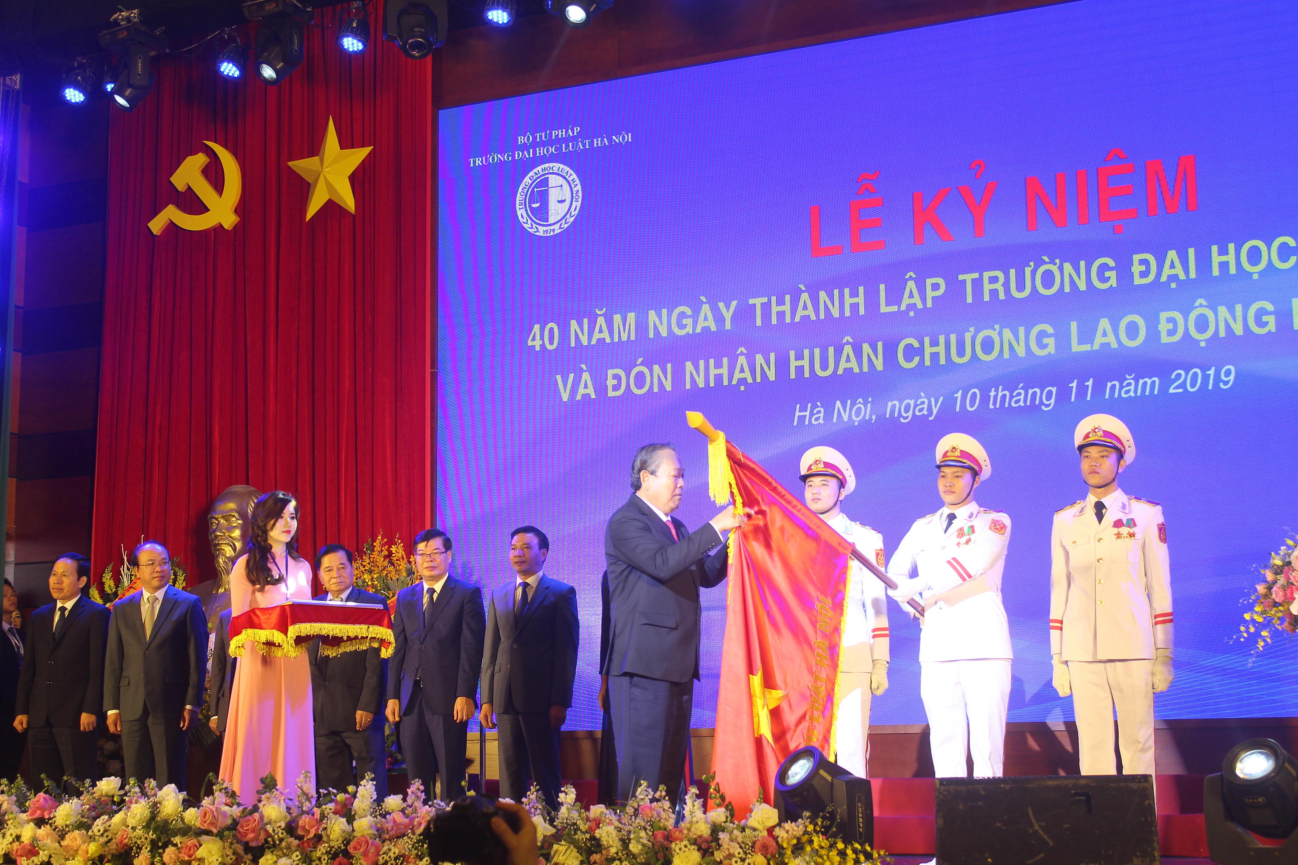 Tại Lễ kỷ niệm, Phó Thủ tướng Thường trực Chính phủ Trương Hòa Bình đã trang trọng gắn Huân chương Lao động hạng Nhất lên lá cờ truyền thống của Trường.
