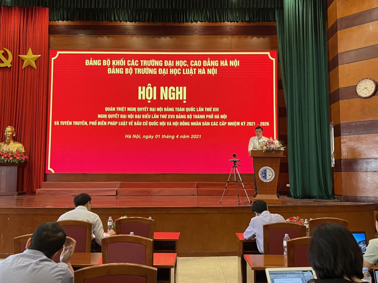 (PLVN) -Ngày 1/4, Trường Đại học Luật Hà Nội đã tổ chức Hội nghị Quán triệt Nghị quyết Đại hội Đảng toàn quốc lần thứ XIII, Nghị quyết Đại hội đại biểu lần thứ XVII Đảng bộ Thành phố Hà Nội và tuyên truyền, phổ biến pháp luật về bầu cử Quốc hội và Hội đồng nhân dân các cấp nhiệm kỳ 2021 – 2026.