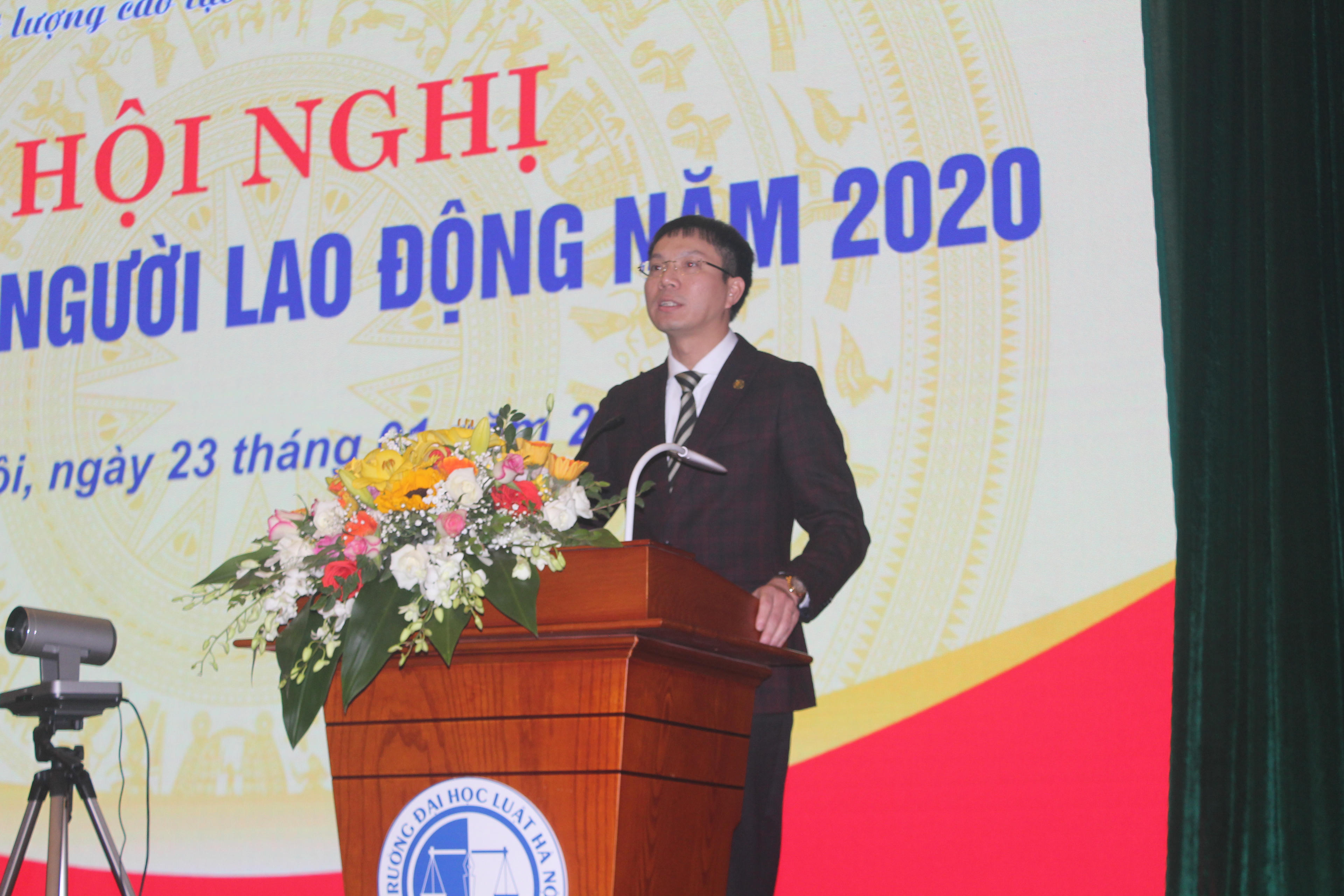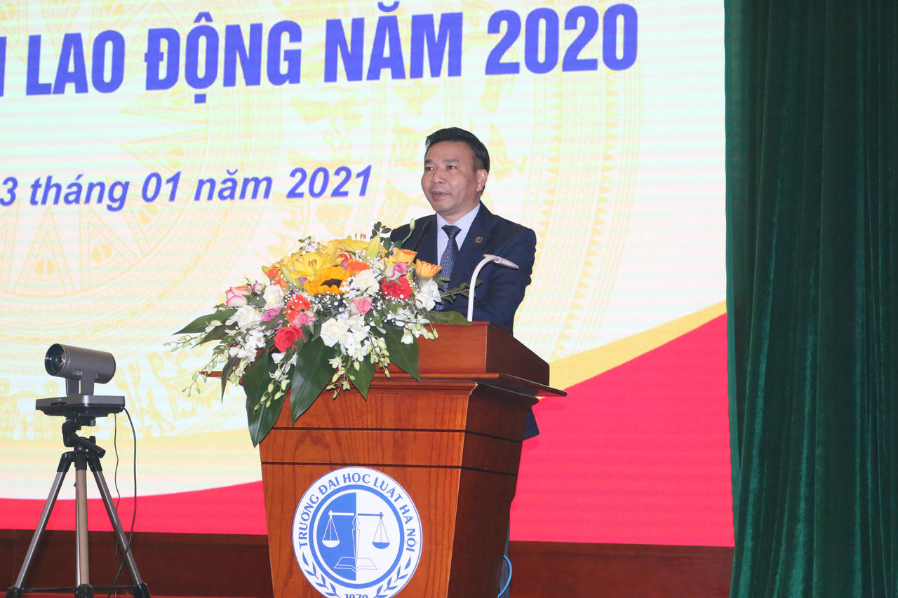 Phát biểu tại hội nghị, ông Đoàn Trung Kiên, Phó Bí thư Đảng ủy, Hiệu trưởng nhà trường nhấn mạnh: năm 2021 là năm có ý nghĩa đặc biệt quan trọng của đất nước, của Ngành Tư pháp cũng như của Trường Đại học Luật Hà Nội. Đây là năm đầu tiên thực hiện Nghị quyết của Đại hội đại biểu toàn quốc lần thứ XIII của Đảng trong bối cảnh đó, Trường tiếp tục triển khai thực hiện các phương hướng, nhiệm vụ và giải pháp tiếp tục thực hiện Quyết định số 549/QĐ-TTg của Thủ tướng Chính phủ, Nghị quyết số 54-NQ/BCSĐ về lãnh đạo thực hiện một số nhiệm vụ trọng tâm xây dựng Trường Đại học Luật Hà Nội thành trường trọng điểm đào tạo cán bộ về pháp luật đến năm 2021, tầm nhìn đến năm 2030.
