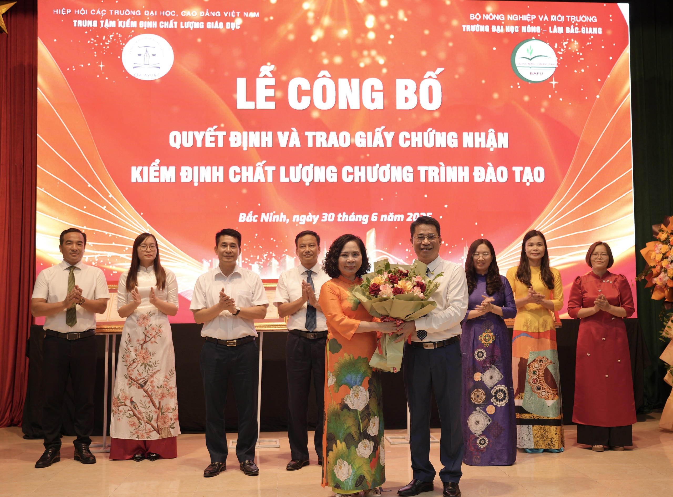 Cũng trong dịp này, ông Nguyễn Anh Tuấn Chánh văn phòng Trung tâm Kiểm định chất lượng – Hiệp hội các trường Đại học, Cao đẳng Việt Nam, trường Đại học Nông – Lâm Bắc Giang đã đọc quyết định chứng nhận kiểm định chất lượng 03 chương trình đào tạo trình độ Đại học ngành Bảo vệ thực vật; Quản lý tài nguyên môi trường; Ngôn ngữ Trung Quốc; và 01 chương trình đào tạo trình độ Thạc sĩ ngành Quản lý kinh tế, cho trường ĐH Nông – Lâm Bắc Giang. Thành quả này là sự khẳng định chất lượng, uy tín và sự cam kết của nhà trường trong việc không ngừng nâng cao hiệu quả đào tạo hướng tới chuẩn quốc gia và chuẩn quốc tế.
