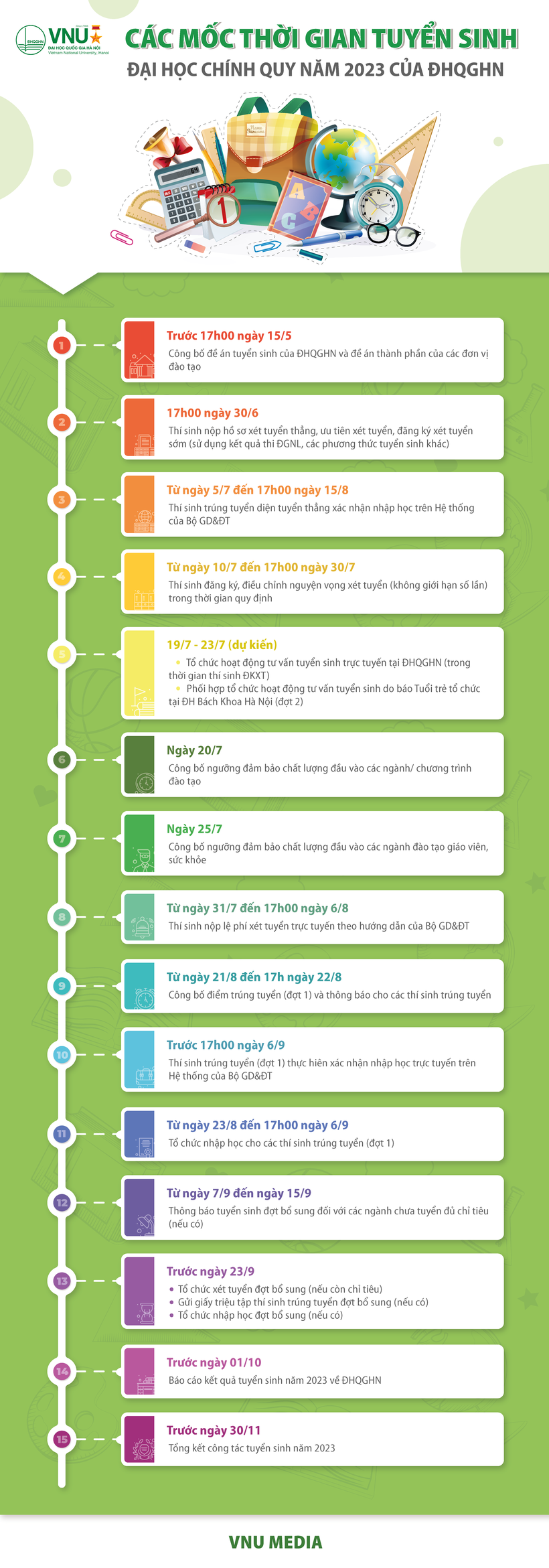 Đại học Quốc gia Hà Nội xét tuyển đại học sớm, thời gian đăng ký trong 3 tuần (PLVN) - Đại học Quốc gia Hà Nội xét tuyển đại học sớm hơn năm trước, thời gian đăng ký nguyện vọng xét tuyển trong 3 tuần, bắt đầu từ ngày 10/7. Chủ Nhật 30/04/2023 10:45 (GMT+7) (Nguồn: Đại học Quốc gia Hà Nội). Thanh Hà
