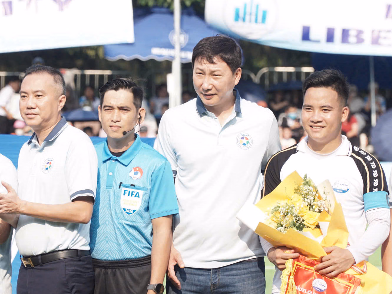 Đặc biệt, sự xuất hiện của ông Kim Sang-sik - Huấn luyện viên trưởng Đội tuyển bóng đá quốc gia Việt Nam đã làm tăng thêm sức nóng cho buổi lễ bế mạc. Ông Kim Sang-sik đã giao lưu với khán giả, tặng hoa và động viên tinh thần các cầu thủ trước khi trận đấu diễn ra.