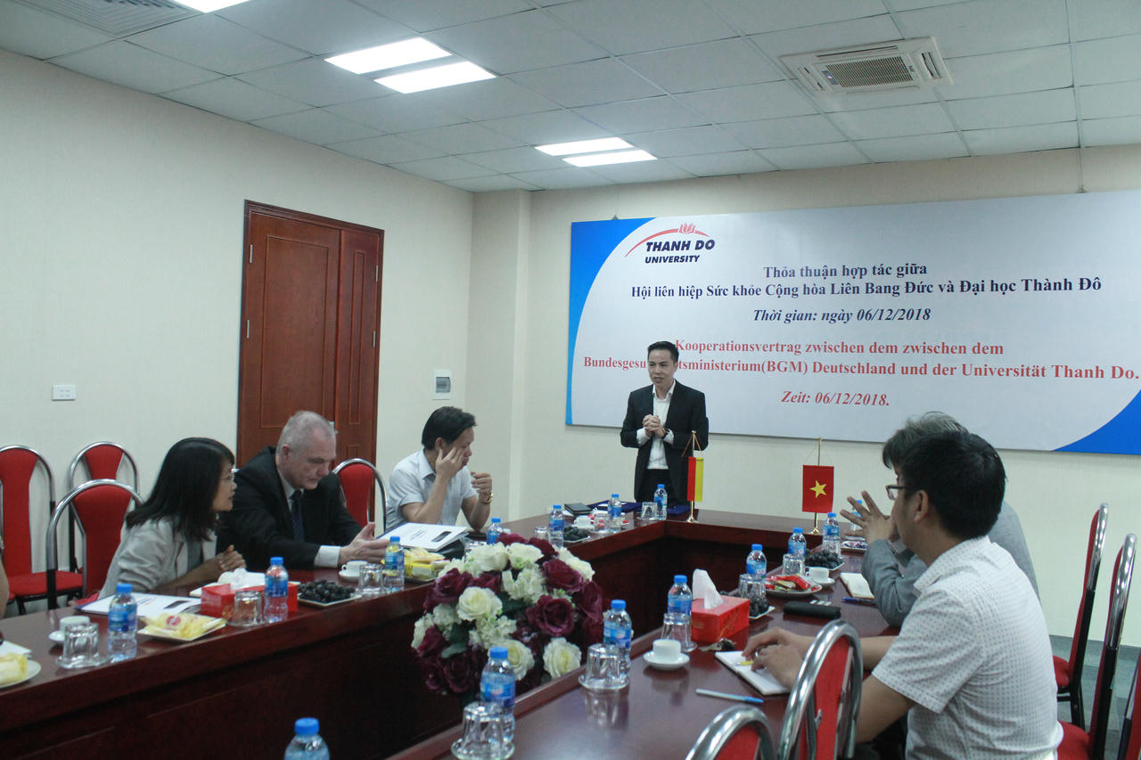 Tham gia buổi làm việc, phía Trường Đại học Thành Đô có Nhà giáo Nhân dân Ngô Xuân Độ - Chủ tịch Hội đồng quản trị, Tiến sĩ Ngô Xuân Hà - Hiệu trưởng Nhà trường, phía Hội liên hiệp sức khỏe CHLB Đức có ông Eberhard Reeck - Chủ tịch Hội, phía Công ty Cổ phần tư vấn giáo dục và Định cư Expertrans có ông Đinh Khắc Tuấn - Chủ tịch Hội đồng quản trị công ty.