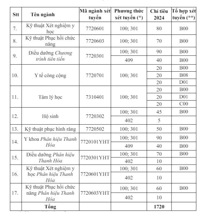 Theo đề án tuyển sinh đại học vừa công bố, năm nay, Đại học Y Hà Nội tuyển sinh tổng 1.720 chỉ tiêu cho 17 ngành học, tăng 362 chỉ tiêu so với năm 2023.