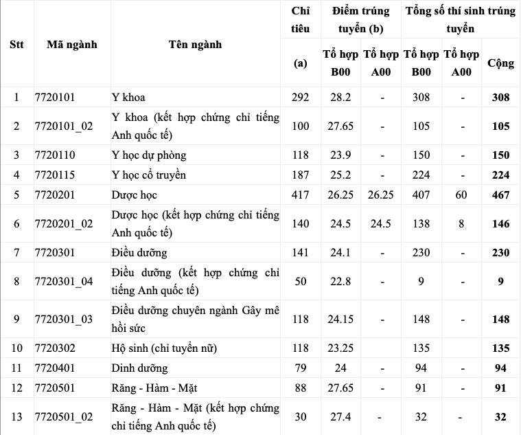 Trong khi đó, với Trường Đại học Y Dược TP HCM điểm chuẩn từ 19 đến 23 điểm. Nhà trường xét tuyển dựa vào kết quả kỳ thi tốt nghiệp THPT năm 2021. Nhà trường xét tuyển 2325 chỉ tiêu với 18 ngành các tổ hợp B00, A00.