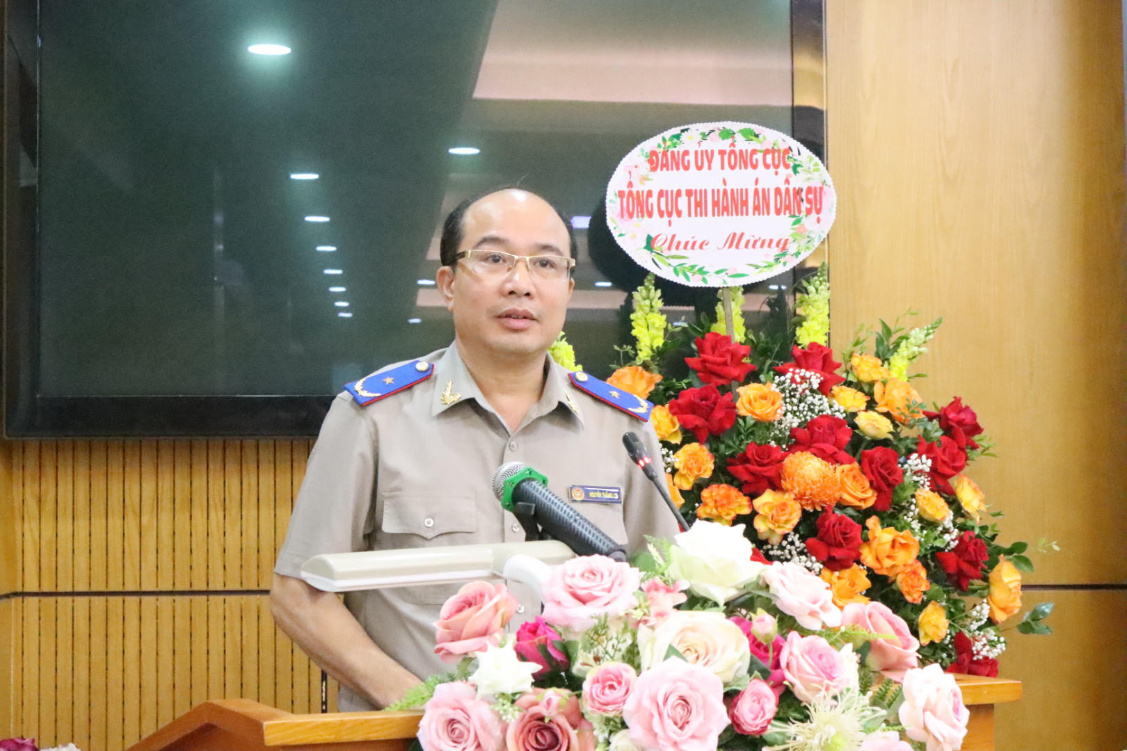 Tổng cục trưởng Tổng cục Thi hành án dân sự Nguyễn Quang Thái phát biểu tại Đại hội. |