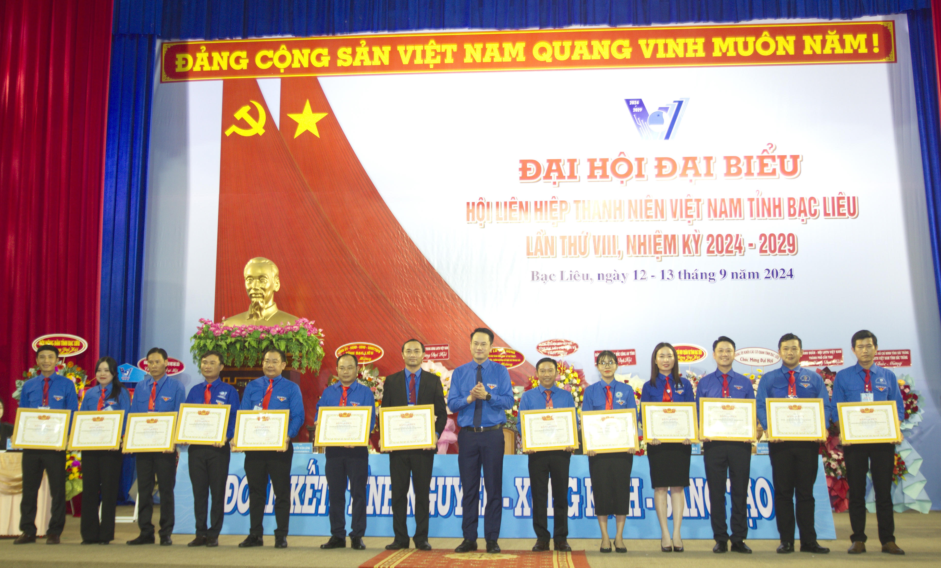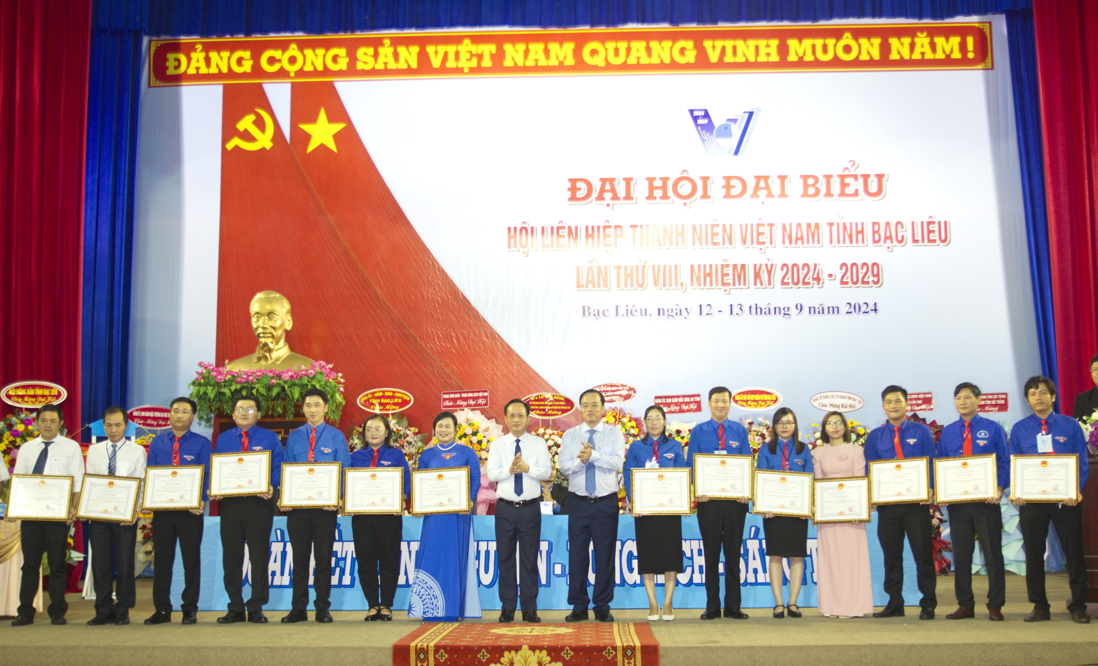 Dịp này, Trung ương Hội LHTN Việt Nam tặng Bằng khen cho 6 tập thể và 13 cá nhân xuất sắc; Chủ tịch UBND tỉnh Bạc Liêu tặng Bằng khen 15 tập thể và 30 cá nhân có thành tích xuất sắc công tác Hội và phong trào thanh niên tỉnh, nhiệm kỳ 2019 - 2024.