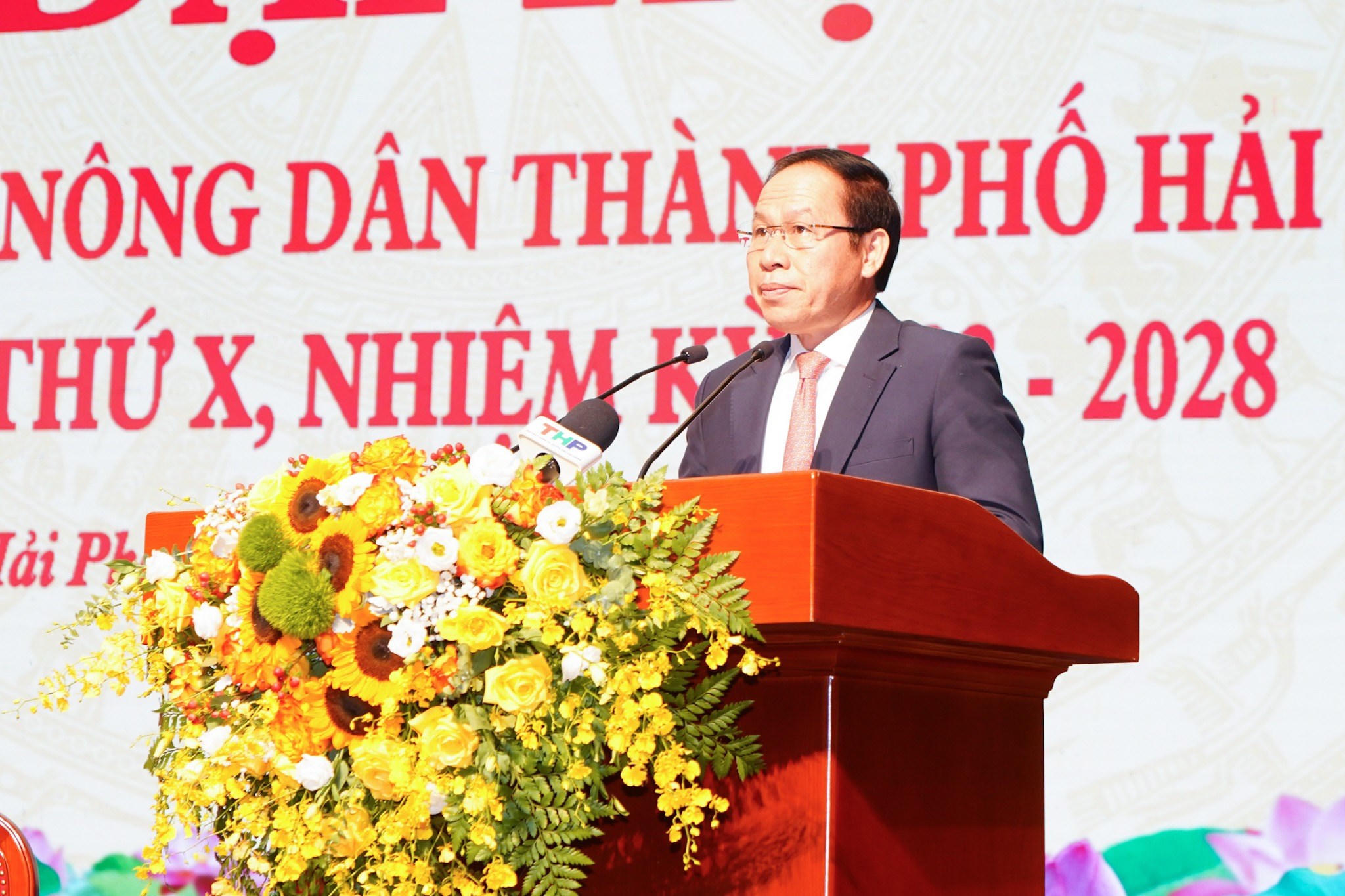 Phát biểu chỉ đạo tại Đại hội, Bí thư Thành ủy Lê Tiến Châu ghi nhận và đánh giá, các cấp Hội đã làm tốt công tác vận động nông dân phát triển kinh tế, xây dựng nông thôn mới, đô thị văn minh và giảm nghèo bền vững. Trong bối cảnh TP Hải Phòng đang chủ trương đẩy mạnh công nghiệp hóa, hiện đại hóa; quỹ đất dành cho sản xuất nông nghiệp ngày càng bị thu hẹp đòi hỏi phong trào nông dân và tổ chức Hội cũng phải tiếp tục đổi mới phương thức hoạt động, củng cố tổ chức để nâng cao hiệu quả, phát huy thật tốt vị thế, sức mạnh của giai cấp nông dân trong sự nghiệp xây dựng và phát triển TP.