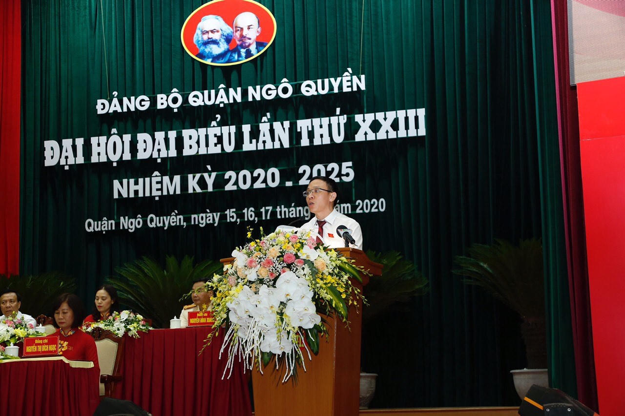 Phát biểu tại Đại hội, Bí thư Quận uỷ, Chủ tịch UBND quận Ngô Quyền Đào Trọng Đức nêu rõ: Trong nhiệm kỳ 2015-2020, với tinh thần chính trị cao, chủ động và đánh giá đúng tình hình, Đảng bộ, chính quyền, quân và dân quận Ngô Quyền đã phát huy truyền thống đoàn kết, năng động, sáng tạo, khắc phục khó khăn, quyết tâm hoàn thành toàn diện 06 chỉ tiêu, 05 nhiệm vụ trọng tâm, 08 nhóm nhiệm vụ, giải pháp được triển khai đồng bộ và đạt kết quả toàn diện, tạo chuyển biến trên tất cả các lĩnh vực.