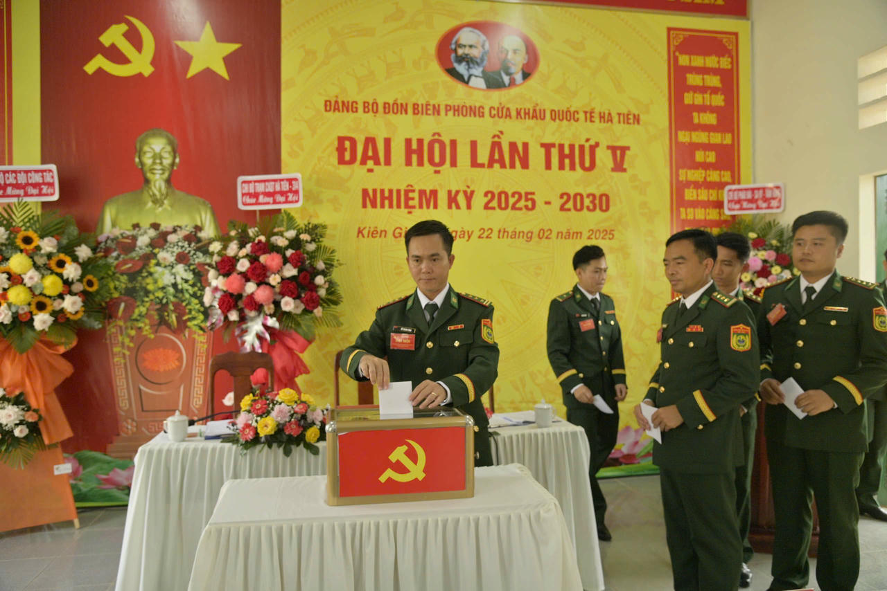 Trên tinh thần tập trung, dân chủ, Đại hội đã bầu ra ban chấp hành Đảng bộ đồn Biên phòng cửa khẩu Quốc tế Hà Tiên nhiệm kỳ 2025 - 2030 gồm 7 đồng chí. Đại hội cũng đã bầu đoàn đại biểu tham dự Đại hội đại biểu Đảng bộ Bộ đội Biên phòng tỉnh gồm 16 đồng chí. Trong phiên họp thứ nhất, Ban chấp hành khóa mới nhiệm kỳ 2025 – 2030 cũng đã Bầu Bí thư, phó Bí thư, bầu Ủy ban kiểm tra, Chủ nhiệm Ủy ban kiểm tra.