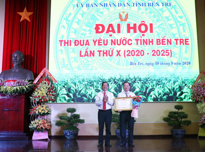 (PLVN) - Ngày 30/09/2020, tỉnh Bến Tre tổ chức đại hội thi đua yêu nước lần X, giai đoạn (2020-2025) tổng kết phong trào thi đua yêu nước giai đoạn 2016-2020, xác định phương hướng, nhiệm vụ giai đoạn 2020-2025 và khen thưởng tập thể, cá nhân có thành tích xuất sắc trong phong trào thi đua yêu nước.