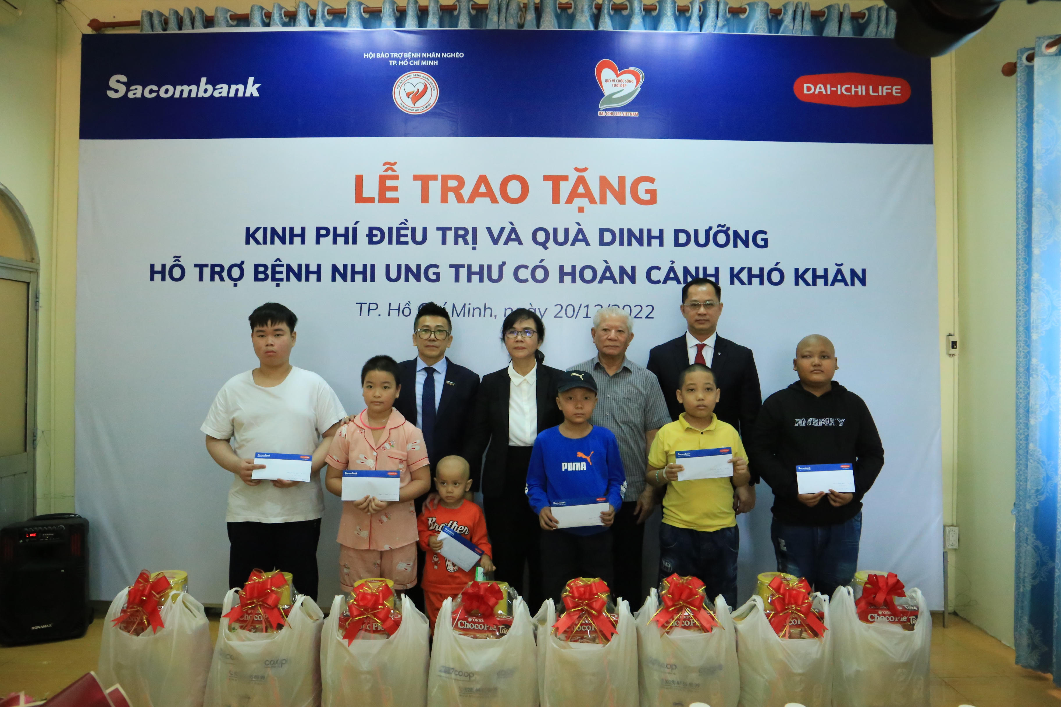 Tiếp nối chương trình, vào ngày 20/12/2022, Dai-ichi Life Việt Nam và Sacombank đã phối hợp cùng Hội Bảo trợ Bệnh nhân nghèo TP.HCM trao 25 suất hỗ trợ chi phí điều trị và quà dinh dưỡng trị giá 500 triệu đồng cho các Bệnh nhi Ung thư đang được điều trị tại Bệnh viện Ung Bướu TP.HCM. Chương trình “Kết nối triệu yêu thương - Hạnh phúc cho cộng đồng” sẽ tiếp tục mang ánh sáng đến với hơn 1.000 bệnh nhân nghèo tại 3 tỉnh Tây Ninh, Trà Vinh và Lâm Đồng trong thời gian sắp tới.