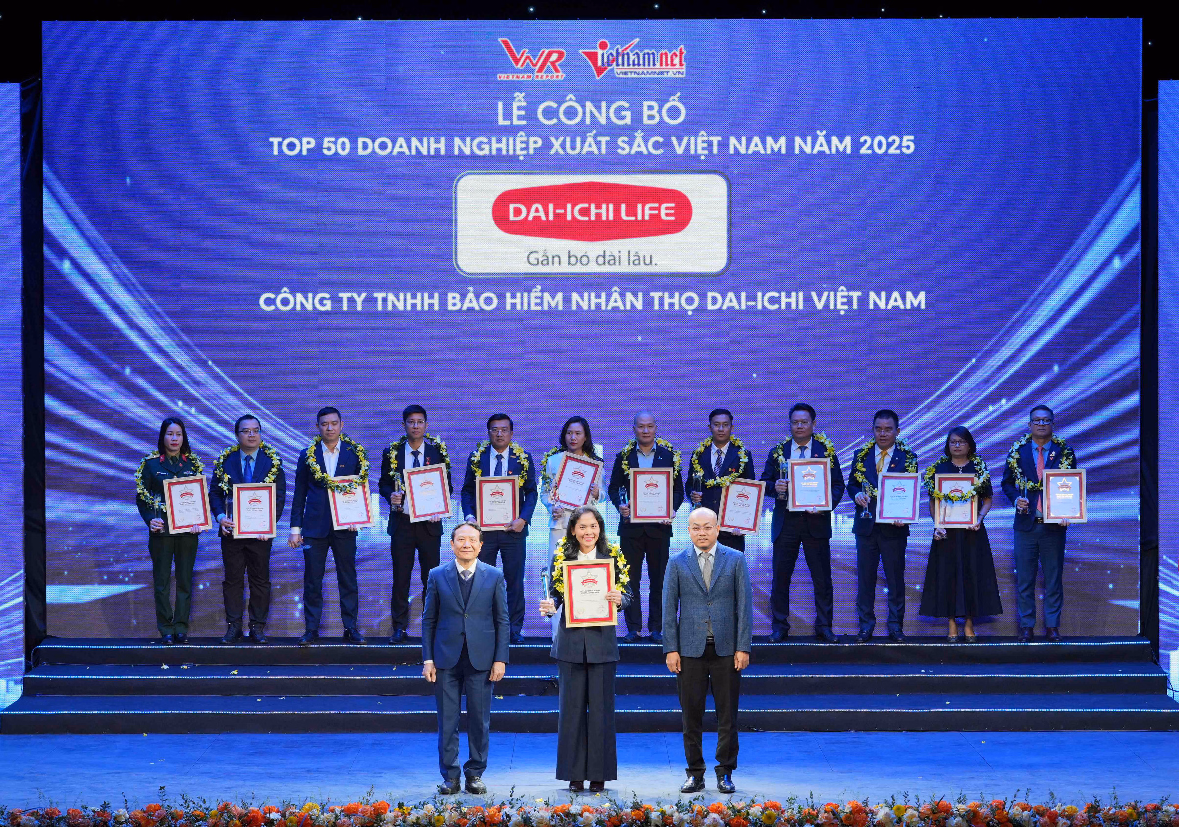Công ty Bảo hiểm Nhân thọ Dai-ichi Việt Nam (“Dai-ichi Life Việt Nam”) đã được vinh danh “Top 500 Doanh nghiệp lớn nhất Việt Nam 2025 (VNR500) và “Top 50 Doanh nghiệp Xuất sắc Việt Nam năm 2025” (Top 50 Vietnam The Best) tại Lễ công bố Bảng xếp hạng VNR500 do Công ty Cổ phần Báo cáo Đánh giá Việt Nam (Vietnam Report) phối hợp với Báo VietNamNet tổ chức tại Nhà hát Hồ Gươm, TP Hà Nội, vào ngày 8/1/2026.