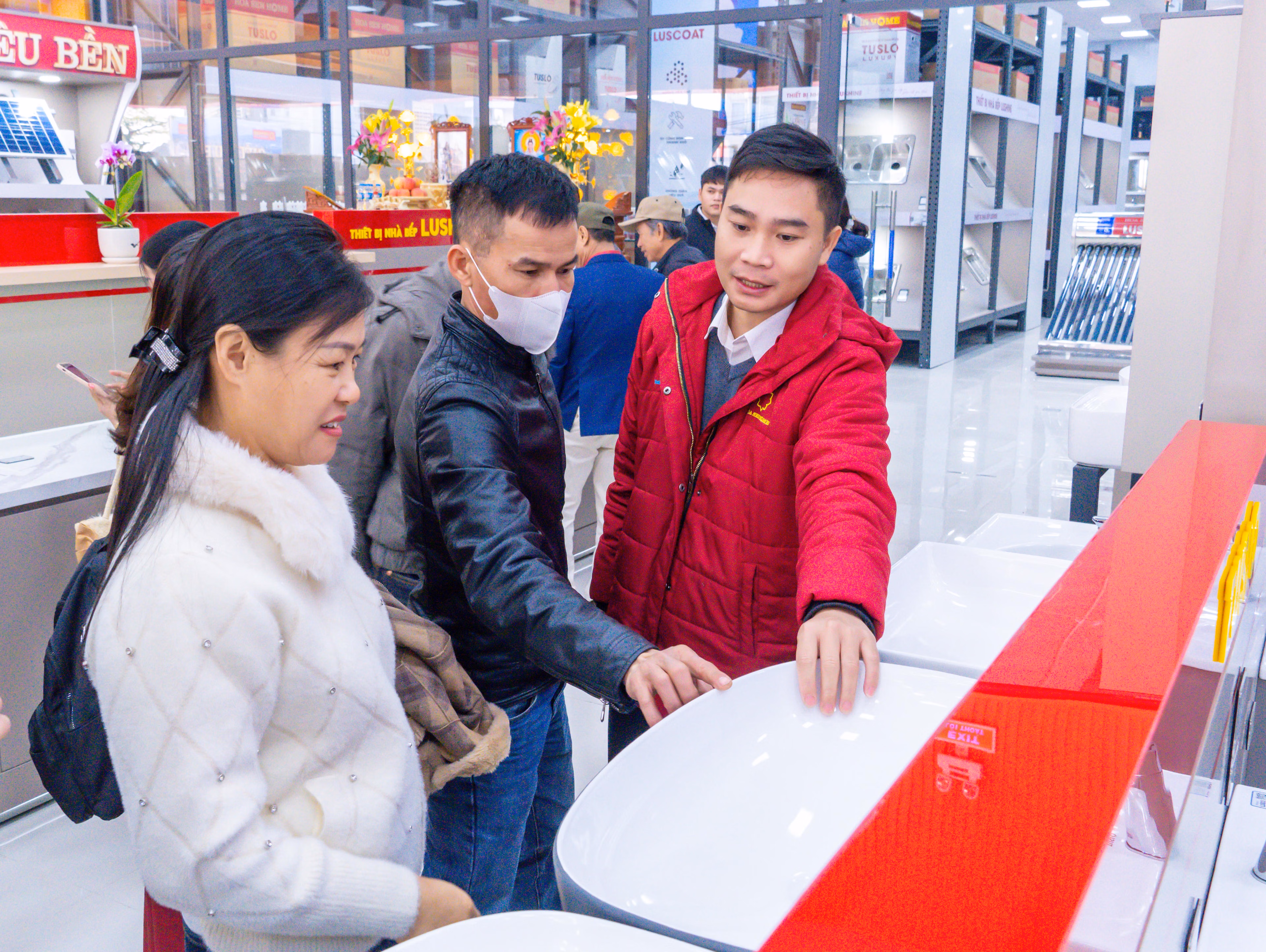 Không gian trưng bày được thiết kế hiện đại, mang đến cơ hội để khách hàng trực tiếp tham quan, tìm hiểu và trải nghiệm nhiều sản phẩm vật liệu xây dựng và thiết bị gia dụng chất lượng, từ thiết bị nhà tắm, nhà bếp, gạch ốp lát, ngói tráng men đến sơn, thiết bị điện và các công cụ thi công đến từ hệ sinh thái Hoa Sen Home cùng nhiều thương hiệu uy tín trên thị trường.
