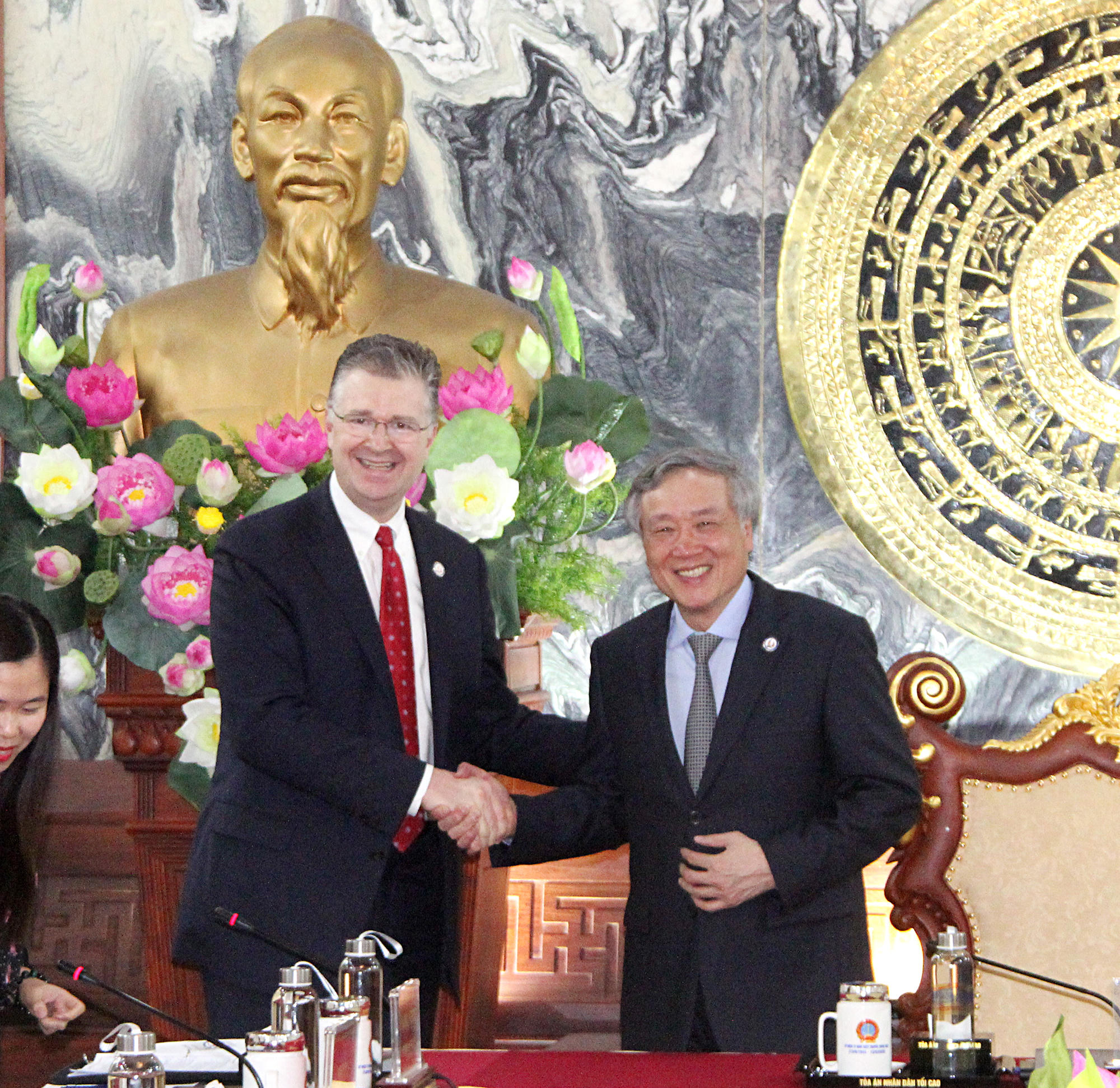 Đại sứ Hoa Kỳ tại Việt Nam, ông Daniel J. Kritenbrink đánh giá cao tinh thần trách nhiệm của lãnh đạo TANDTC Việt Nam trong việc thúc đẩy sự hợp tác của Tòa án hai nước. Đại sứ Kritenbrink bày tỏ quan điểm sẵn sàng ủng hộ Việt Nam trên mọi phương diện và sẽ chuyển lời mời của Chánh án TANDTC Nguyễn Hòa Bình đến Chánh án TATC Liên bang Hoa Kỳ John Roberts.