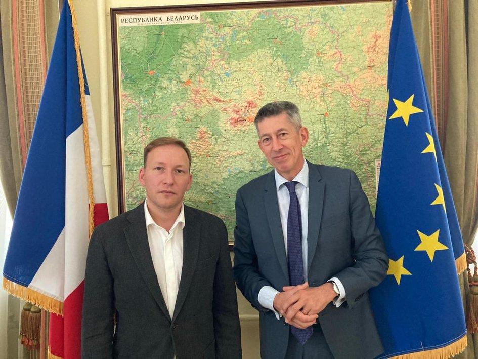 Đại sứ Pháp tại Belarus Nicolas de Bouillane de Lacoste (phải) gặp ông Andrey Dmitriev, đại diện của tổ chức phi chính phủ "Govori pravdou" ngày 13/10/2021. Ảnh: Đại sứ quán Pháp tại Belarus |