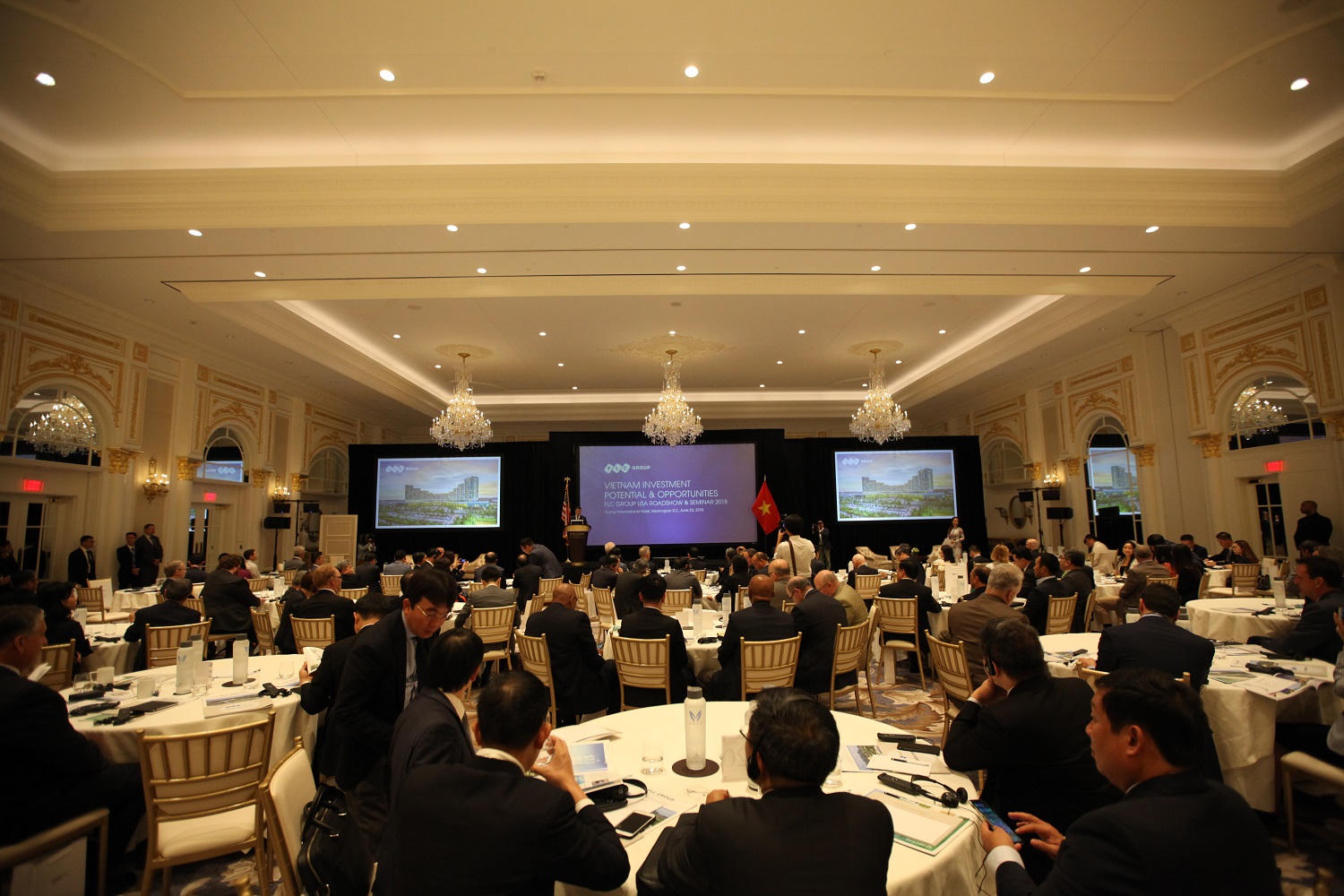 (PLO) - Đây là một sự kiện đặc biệt, khi có sự hiện diện của tới 4 vị Đại sứ, Phó Thủ tướng Vương Đình Huệ phát biểu tại sự kiện quảng bá và xúc tiến đầu tư do Tập đoàn FLC tổ chức hôm 26/6, tại khách sạn Trump International Hotel (Washington D.C., Hoa Kỳ), thu hút sự tham gia của hàng trăm đại diện lãnh đạo các cơ quan Chính phủ, nhà đầu tư cá nhân, tổ chức tài chính, quỹ đầu tư, và doanh nghiệp tại Hoa Kỳ.