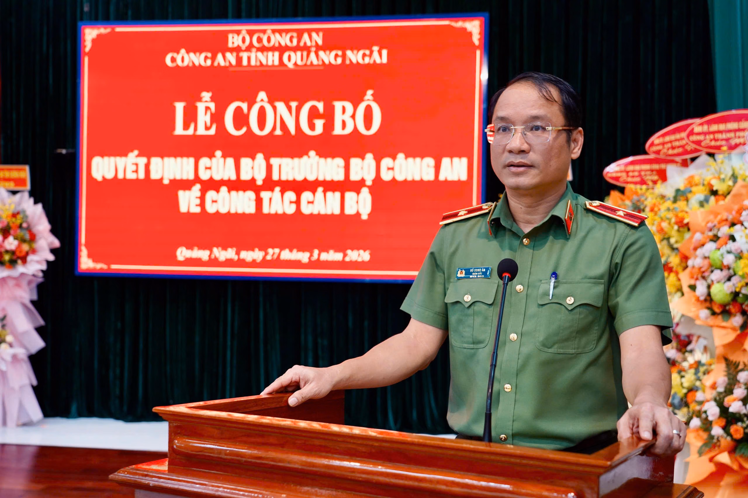 Chiều 27/3, Công an tỉnh Quảng Ngãi tổ chức lễ công bố quyết định của Bộ trưởng Bộ Công an về công tác cán bộ.