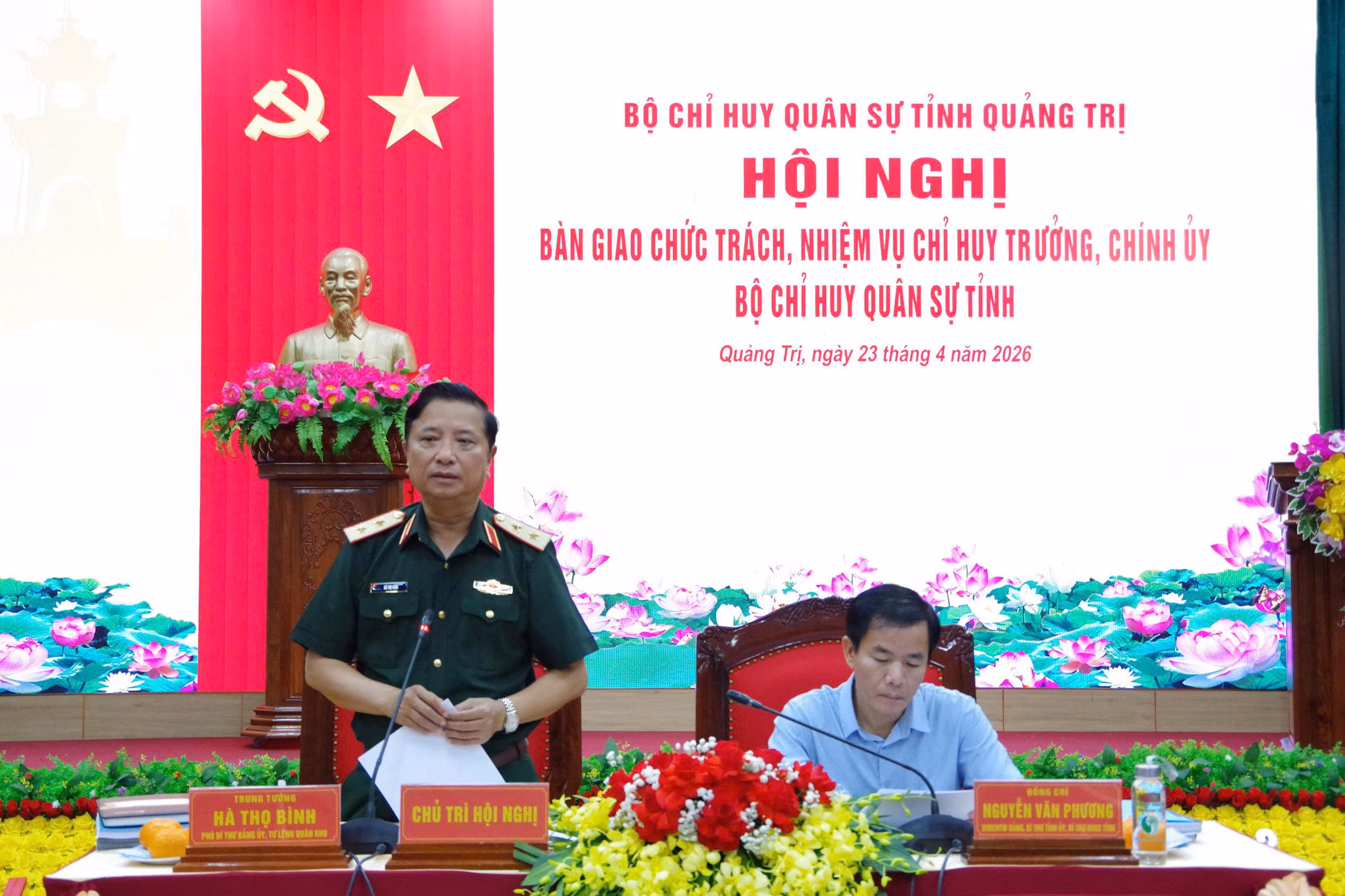 Chiều 23/4, Bộ CHQS tỉnh Quảng Trị tổ chức hội nghị bàn giao chức vụ Chỉ huy trưởng, Chính ủy Bộ CHQS tỉnh. Trung tướng Hà Thọ Bình, Phó Bí thư Đảng ủy, Tư lệnh Quân khu 4 và ông Nguyễn Văn Phương, Ủy viên Ban Chấp hành Trung ương Đảng, Bí thư Tỉnh ủy, Bí thư Đảng ủy Quân sự tỉnh đồng chủ trì hội nghị.