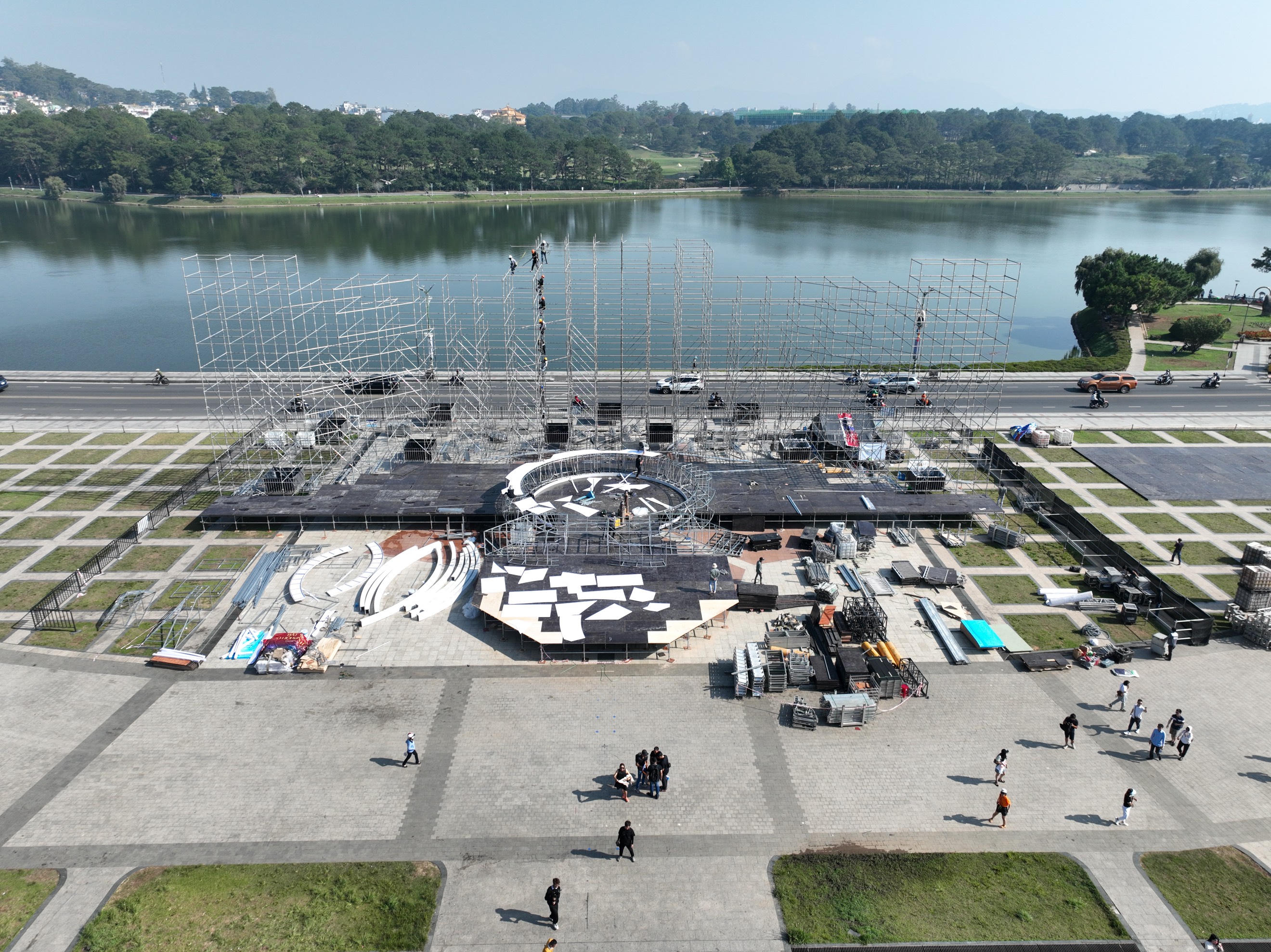 Đơn vị tổ chức đang gấp rút hoàn thành sân khấu Dalat Best Dance Crew 2024. |
