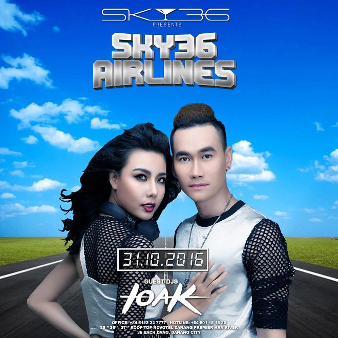 Đêm tiệc Halloween hoành tráng, tưng bừng trên “chuyến bay” xé màn đêm mang số hiệu SKY36 Airlines cách mặt đất 166m còn có sự góp mặt của các nghệ sĩ đầy cá tính và tài năng như MC/Rapper Yugi, MC Louis trong vai trò dẫn dắt và khuấy động không gian tiệc, kết hợp cùng hàng loạt tên tuổi DJ được yêu thích nhất Đà Thành như nữ DJ quyến rũ Annaka, DJ UMT, DJ Zon, DJ Tuấn Anh…