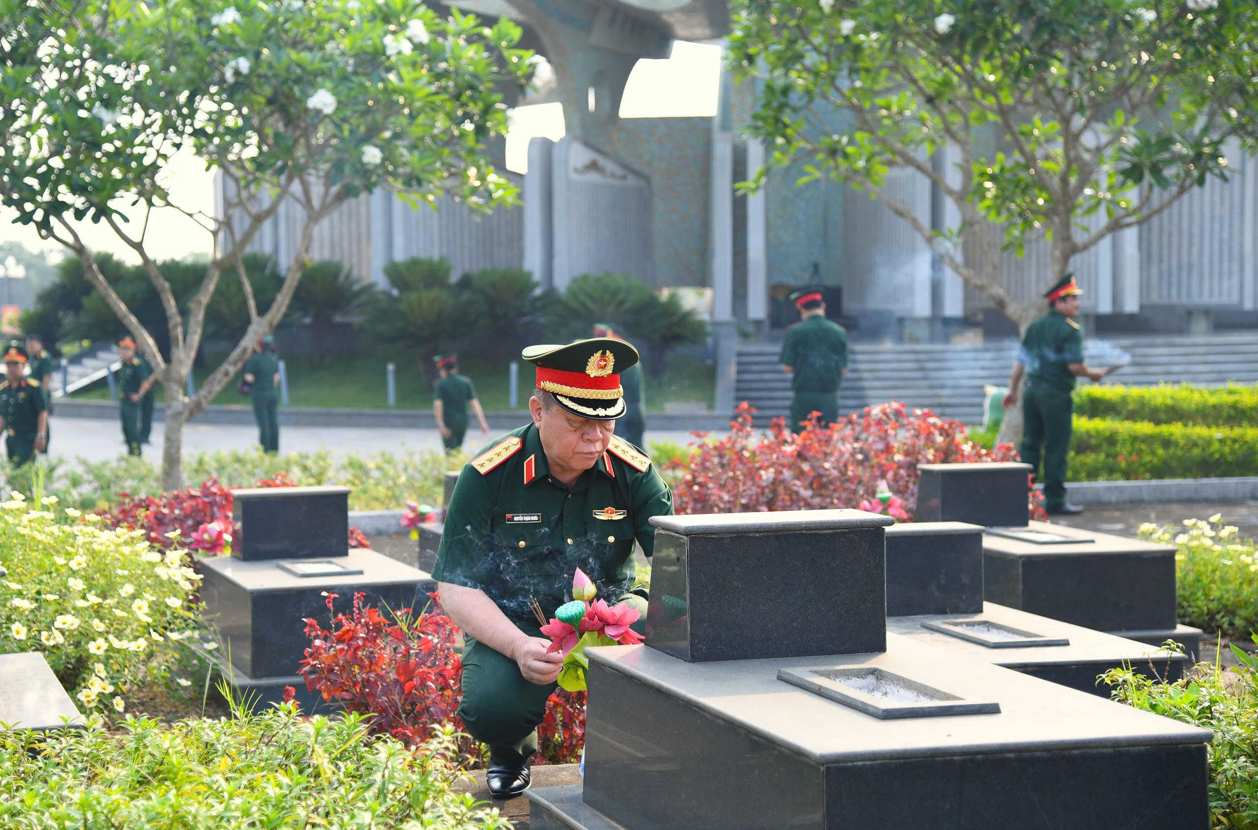 Cũng trong dịp này, Đoàn công tác đã đến thắp hương đồng chí Trung tướng Đào Duy Minh - nguyên Phó Chủ nhiệm Tổng Cục Chính trị.