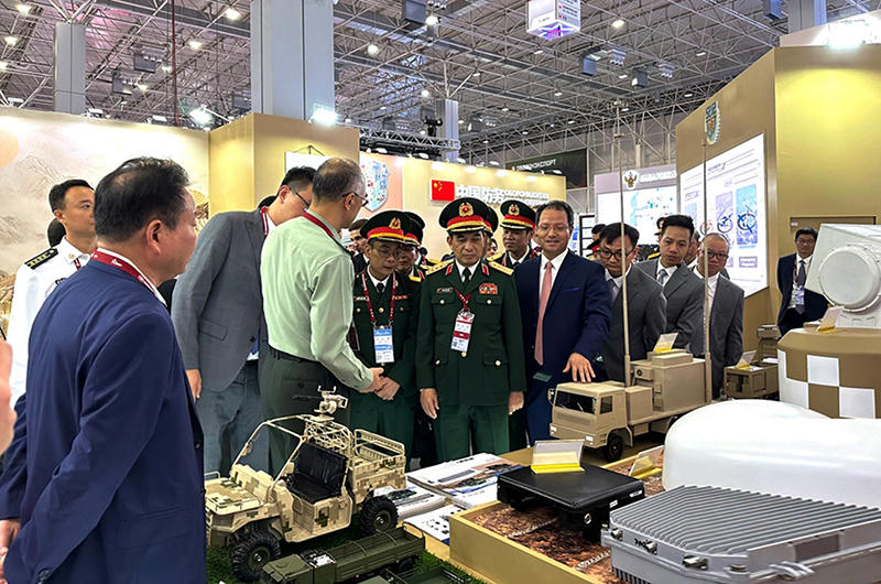 | Đại tướng Phan Văn Giang và các đại biểu dự Army 2023. |