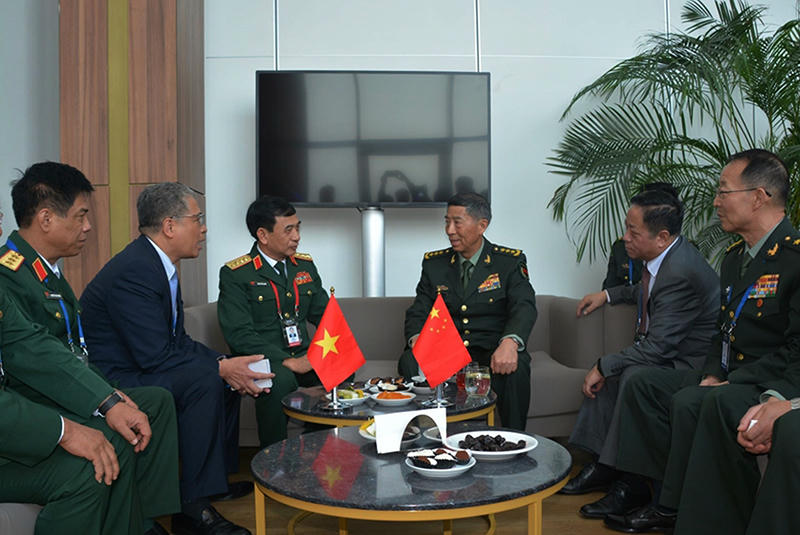 | Bộ trưởng Phan Văn Giang gặp Bộ trưởng Bộ Quốc phòng Trung Quốc Lý Thượng Phúc. |