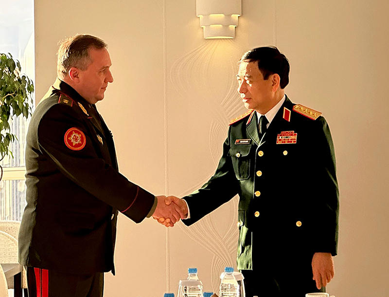 | Bộ trưởng Phan Văn Giang gặp Bộ trưởng Bộ Quốc phòng Bê-la-rút Viktor Gennadievich Khrenin. |