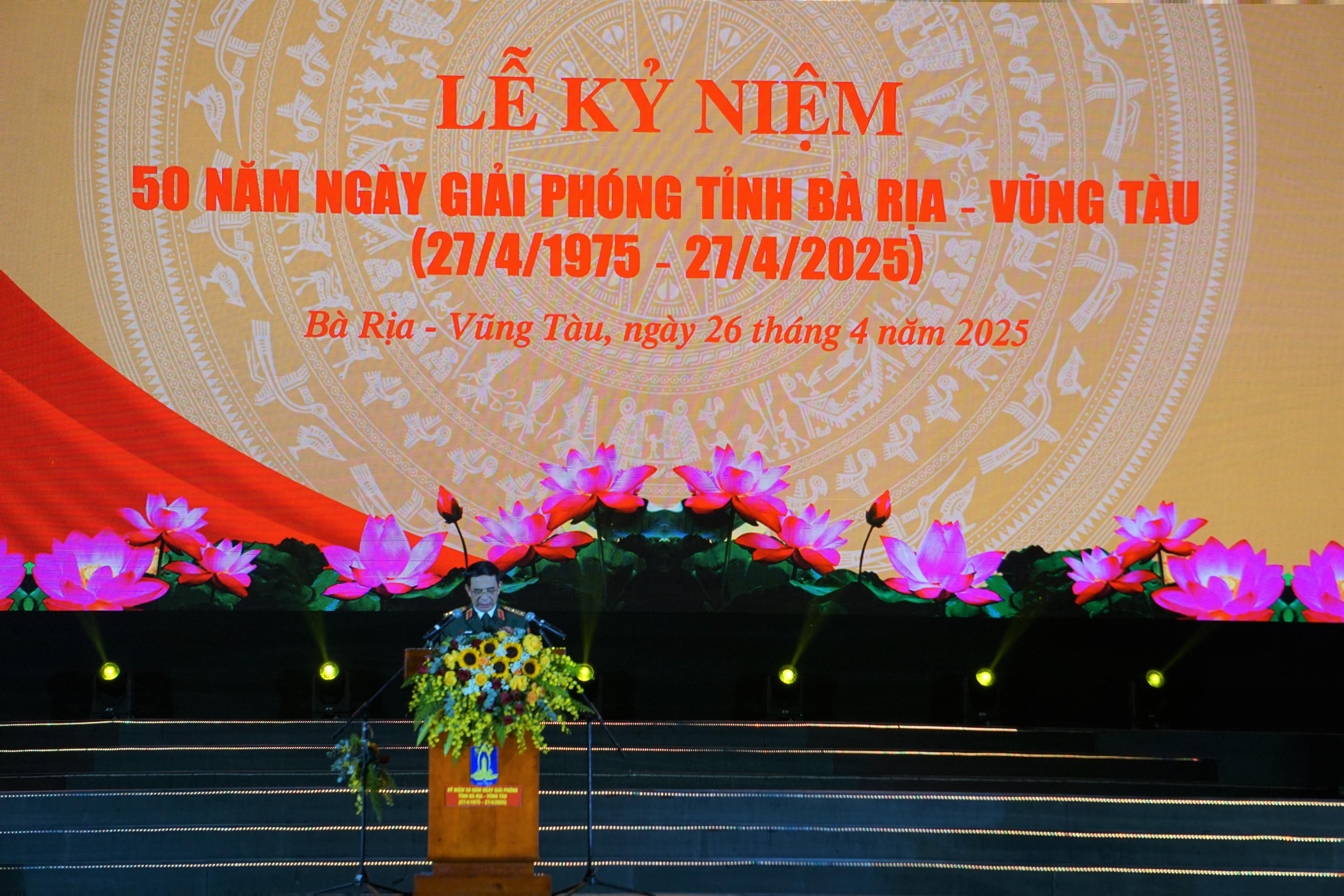 Phát biểu tại buổi lễ, Đại tướng Phan Văn Giang nhấn mạnh: “Chiến thắng 30/4/1975 là mốc son chói lọi trong lịch sử dân tộc Việt Nam, và ngày 27/4/1975 – Ngày Giải phóng tỉnh Bà Rịa – Vũng Tàu, là dấu ấn thiêng liêng, khẳng định tinh thần chiến đấu quả cảm, đoàn kết của quân và dân nơi đây”. Trong không khí trang trọng và thiêng liêng, Bộ trưởng Phan Văn Giang đã ôn lại những trang sử hào hùng của quân và dân Bà Rịa – Vũng Tàu trong công cuộc đấu tranh giải phóng dân tộc. Nơi đây đã ghi dấu nhiều chiến công vang dội trong kháng chiến chống Mỹ cứu nước, với những địa danh lịch sử như Bình Giã, Long Phước, Đất Đỏ, Côn Đảo… Những trận đánh nổi tiếng, những địa danh bi hùng đã khắc sâu tinh thần bất khuất, lòng quả cảm và ý chí kiên cường của quân và dân tỉnh Bà Rịa – Vũng Tàu. Đặc biệt, ngày 27/4/1975, Bà Rịa – Vũng Tàu đã hoàn toàn giải phóng, góp phần quan trọng vào Đại thắng mùa Xuân năm 1975, kết thúc cuộc chiến tranh trường kỳ chống Mỹ cứu nước, giành độc lập dân tộc và thống nhất đất nước.