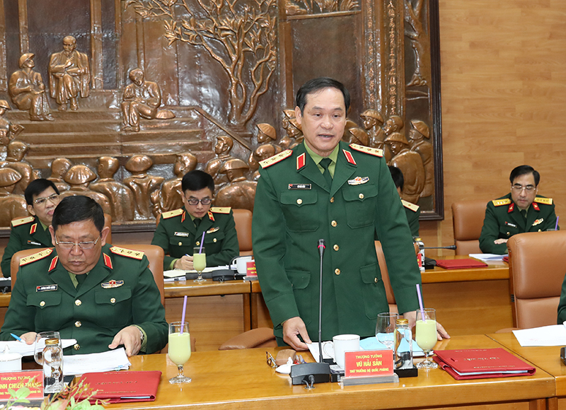 | Thượng tướng Vũ Hải Sản phát biểu tại hội nghị. |
