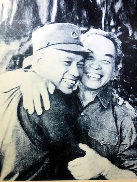 | Đại tướng Võ Nguyên Giáp và Đại tướng Văn Tiến Dũng gặp lại nhau sau giải phóng Sài Gòn ngày 5/5/1975. |
